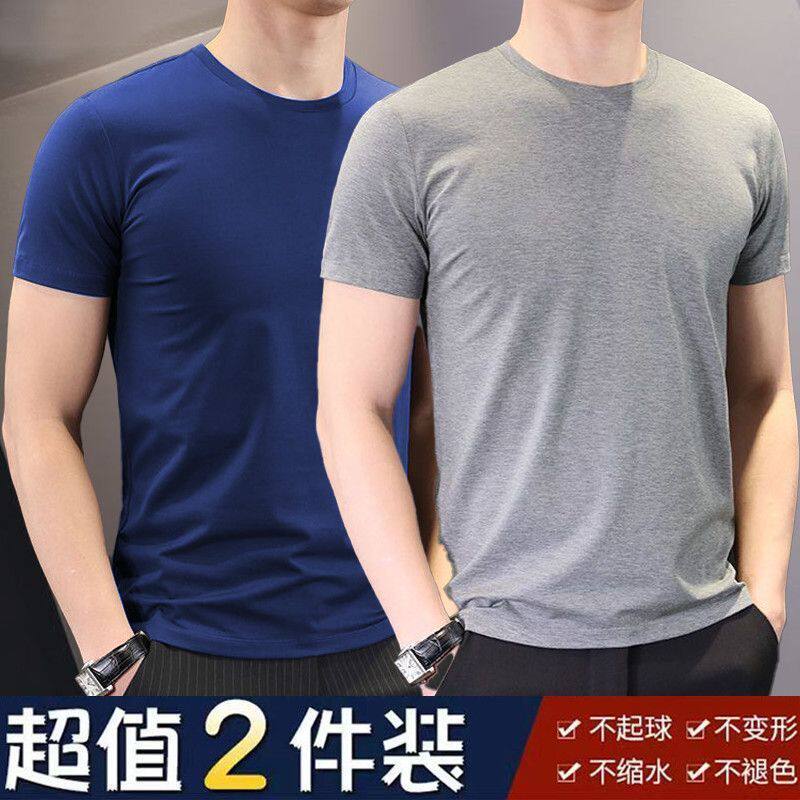 新疆长绒纯棉短袖t恤男士纯色宽松全棉半袖圆领汗衫简约百搭体恤