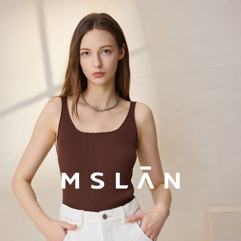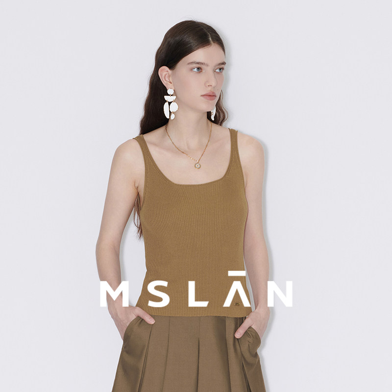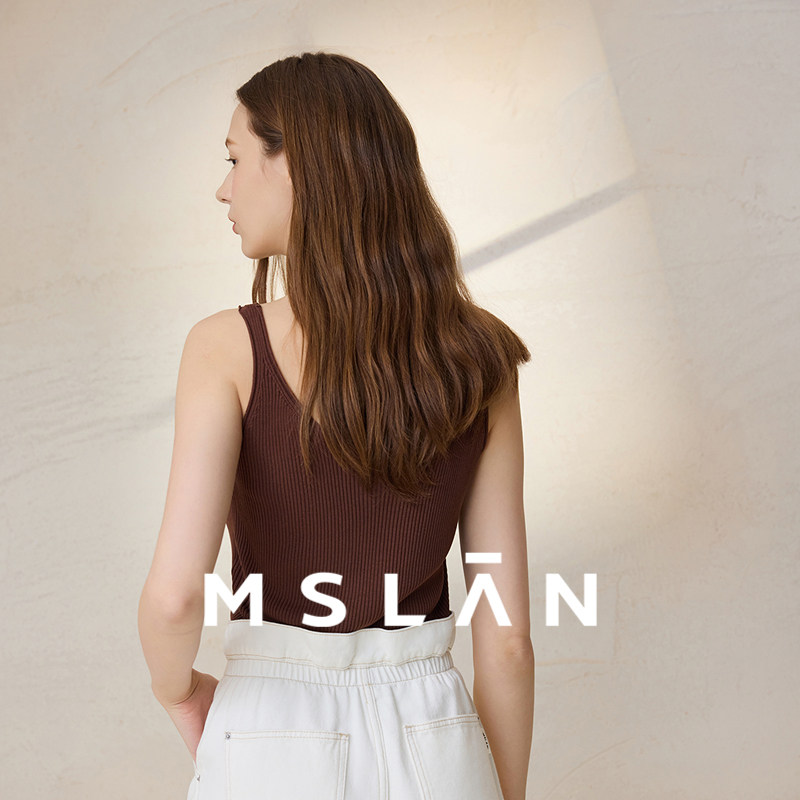 【冰弹不闷】MSLAN夏季时尚美背棕色毛织吊带背心MFCE1006