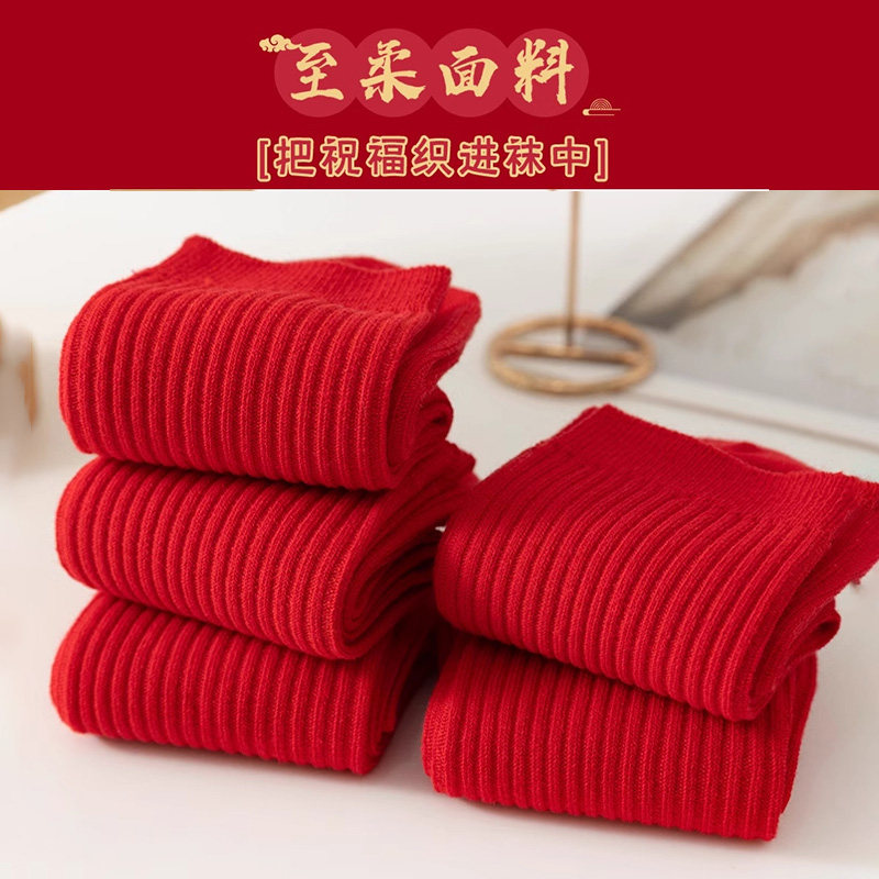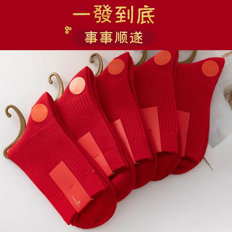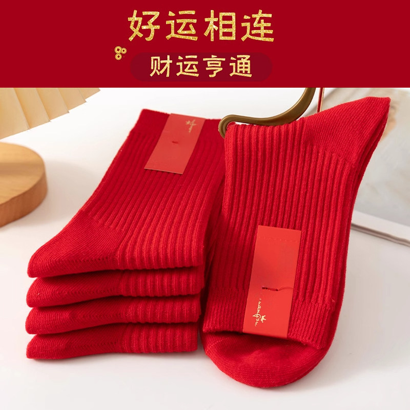 2026马年红袜子男女秋冬季本命年新年中筒袜情侣结婚一对喜庆长袜