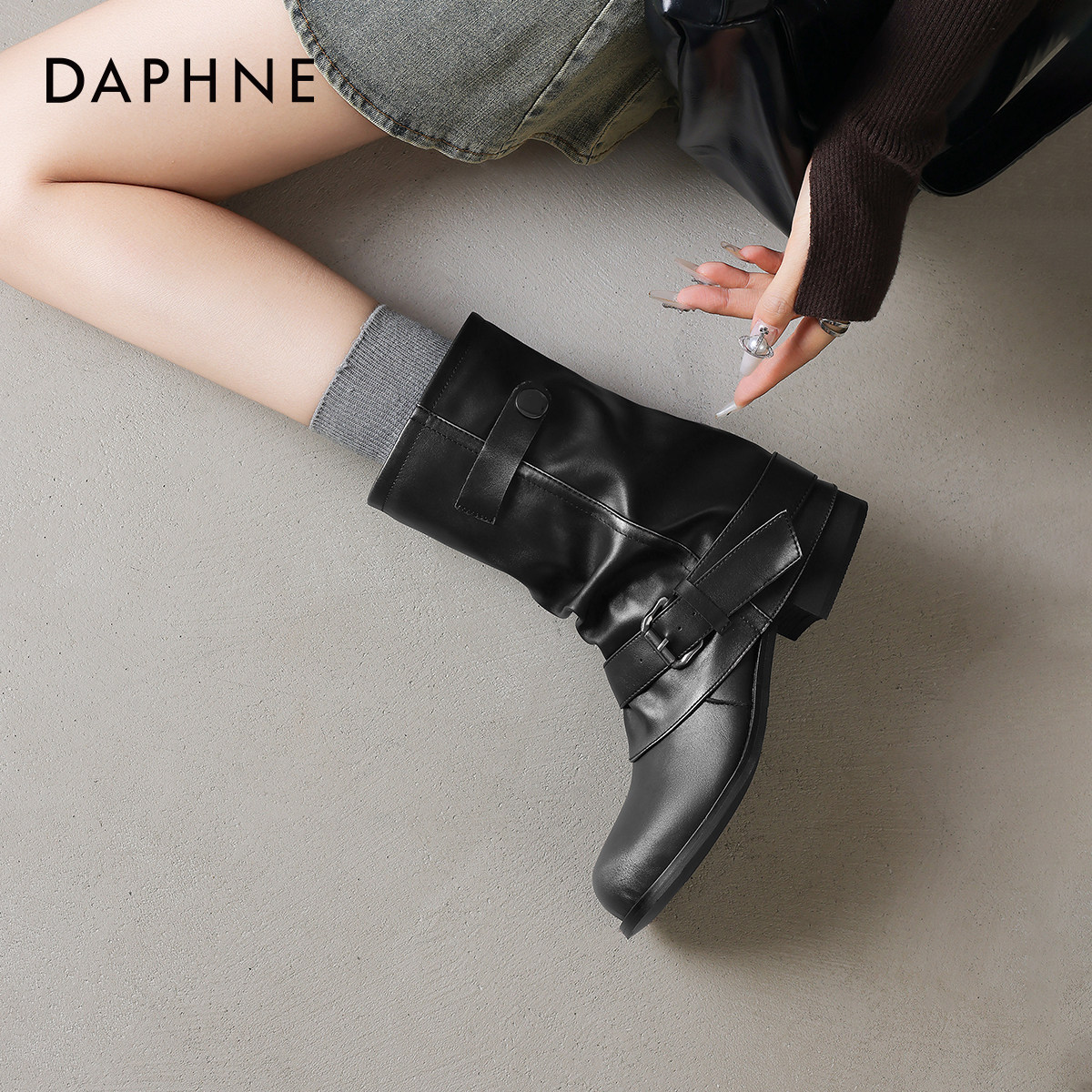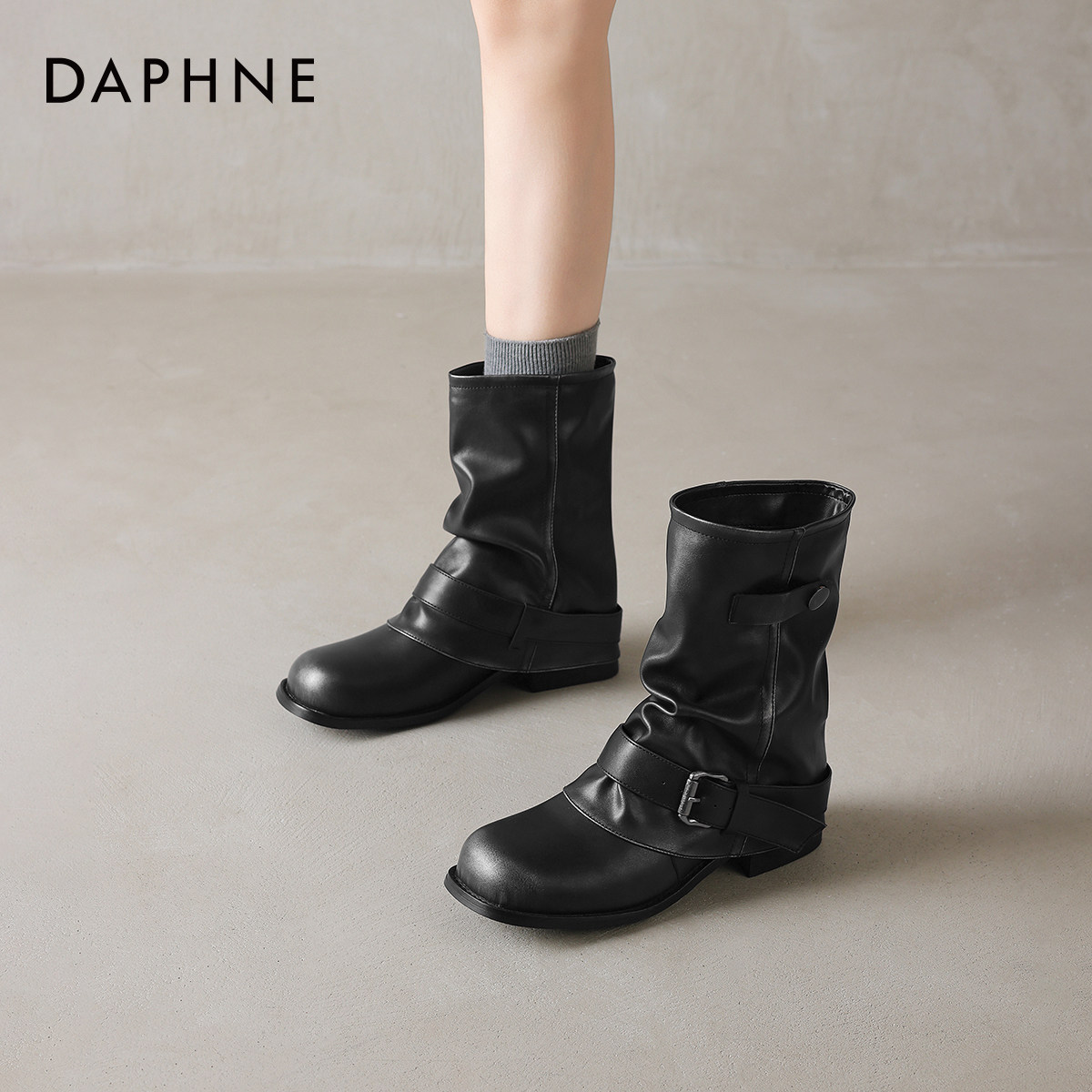 达芙妮靴子短靴女冬季2026新款复古堆堆靴裤管靴骑士靴加绒马丁靴