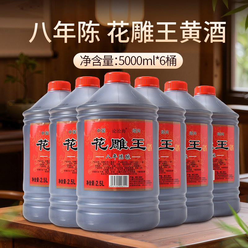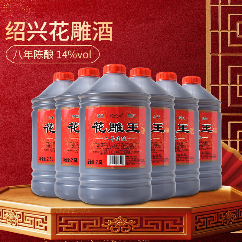 论沧海绍兴黄酒一级品质八年花雕酒14度纯粮黄酒老酒加饭酒2.5L