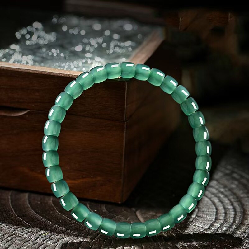 蓝水翡翠冰种直切男女款手串老型珠危地马拉A货手串