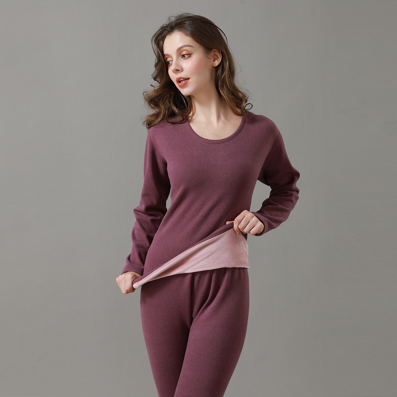 兰帕媛无痕保暖内衣套装双面磨毛绒羊毛蚕丝紧身男女士大人冬季6