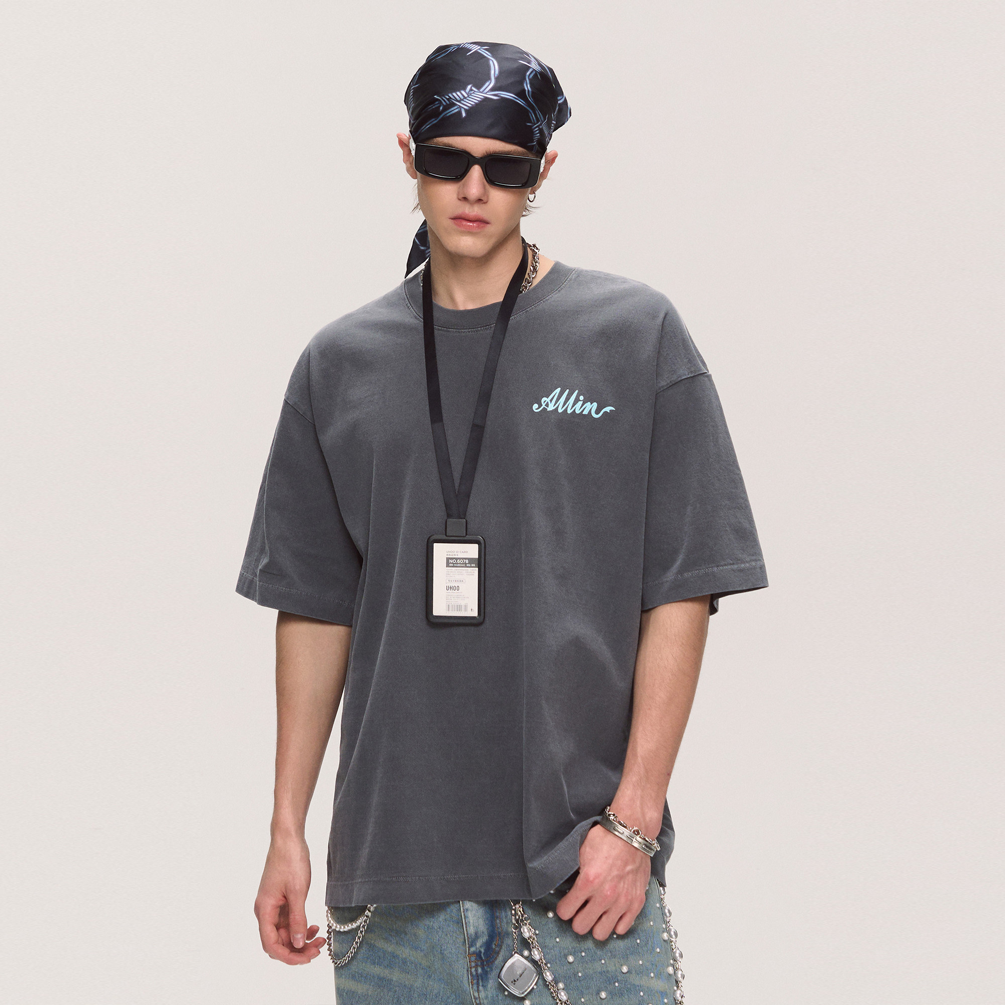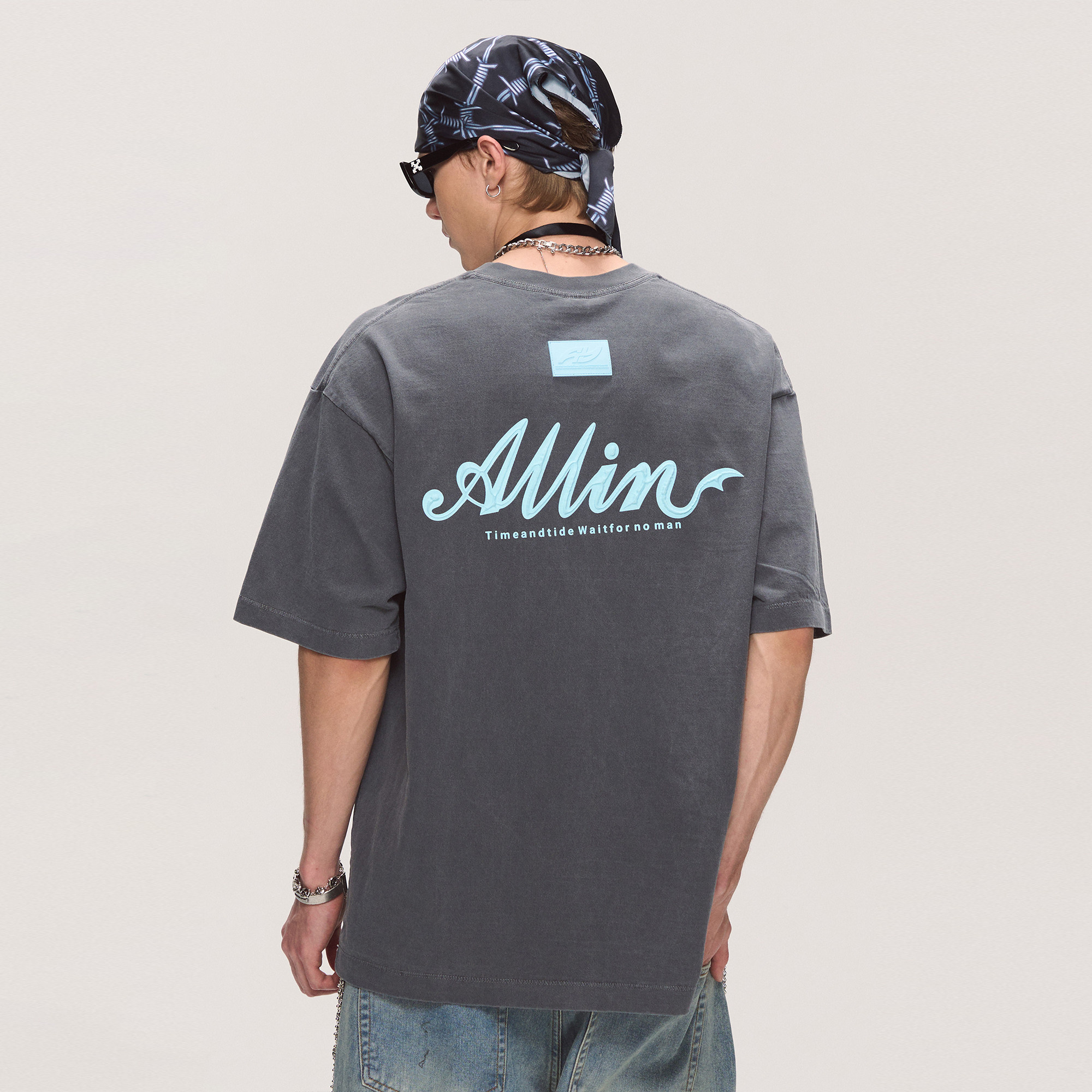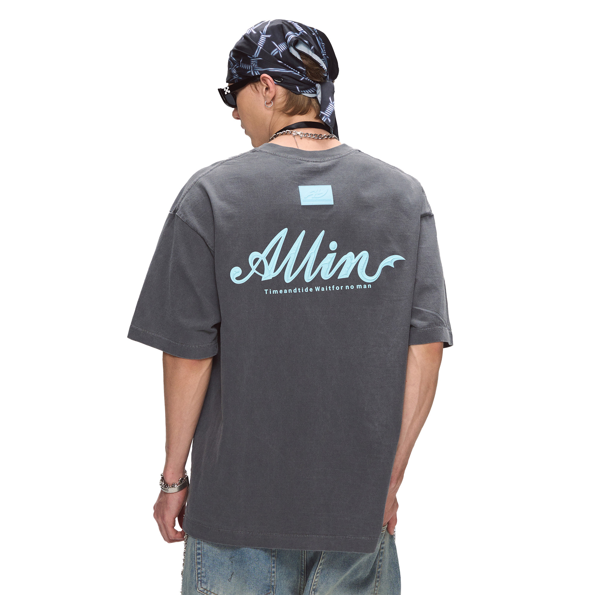 ALLIN 纯棉重磅短袖t恤男2025夏季新款潮牌字母印花半袖情侣上衣