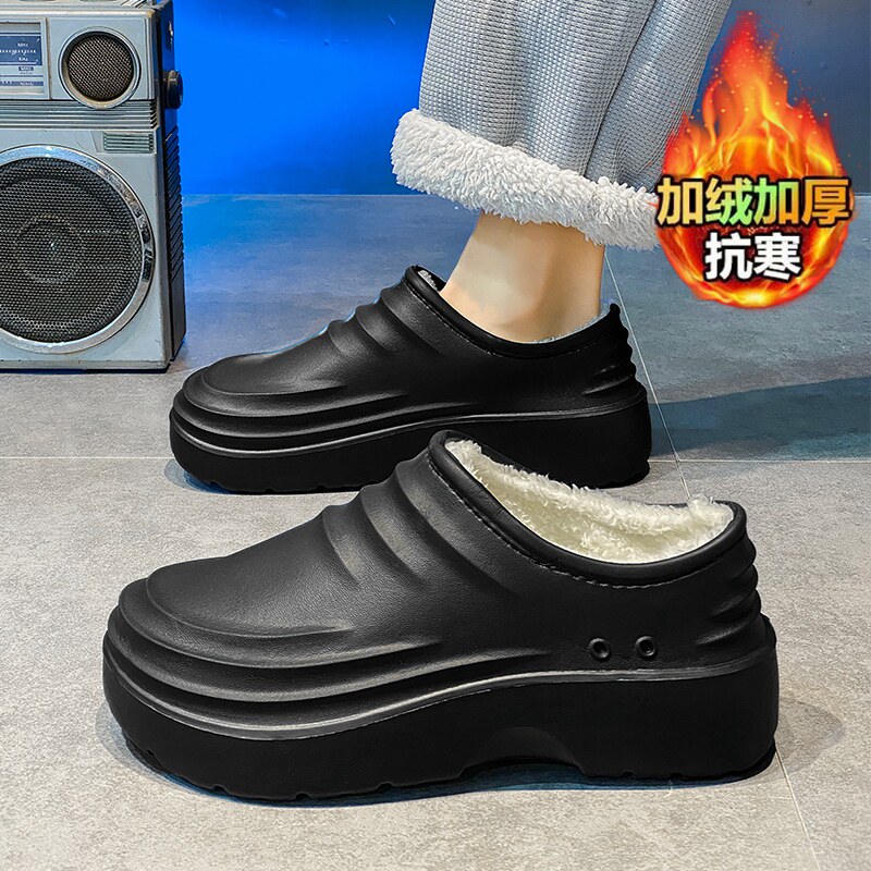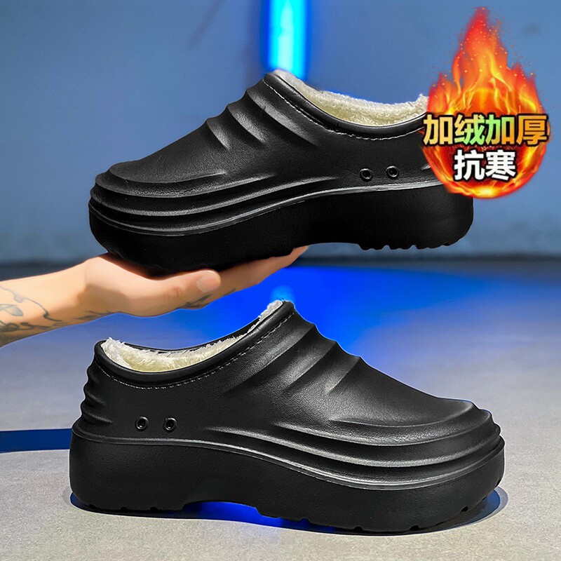 加绒厨师鞋潮流EVA一体成型保暖轻便踩屎感防滑厚底低帮防水棉鞋