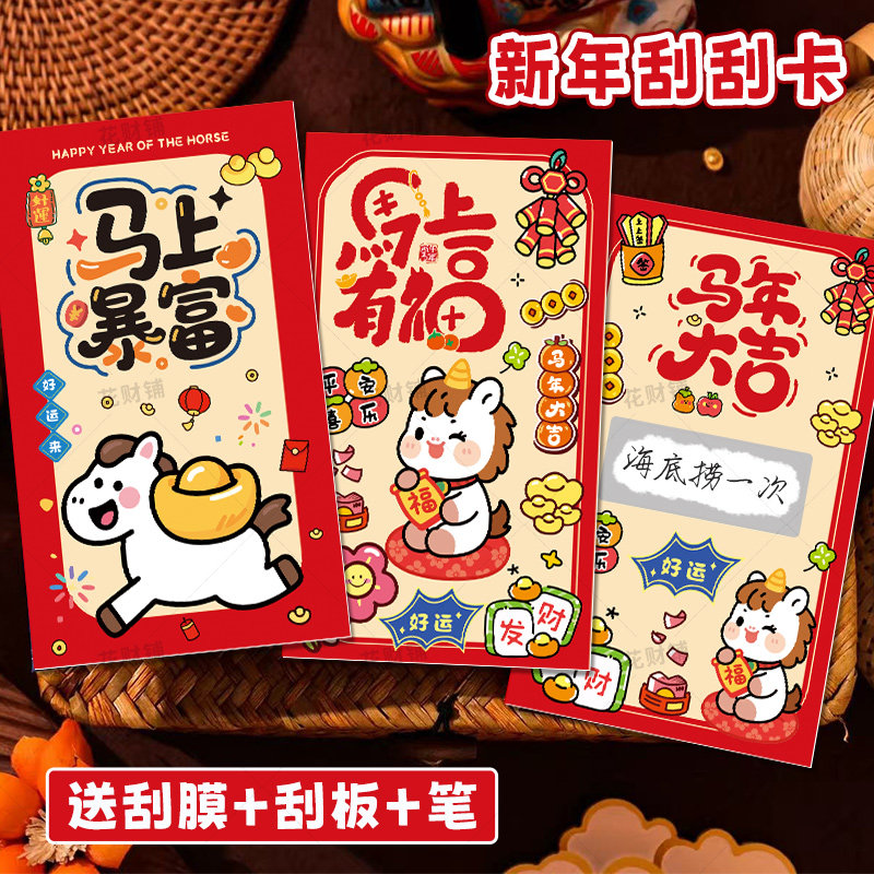马年刮刮卡定制新年餐饮公司周年活动抽奖励卡片diy2026年刮刮乐