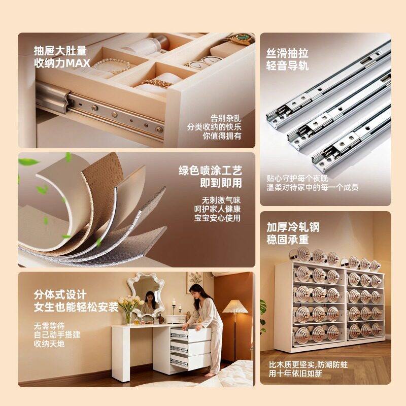 马尔姆钢制五斗柜卧室简约收纳柜床尾抽屉柜玄关储物柜铁皮梳妆台