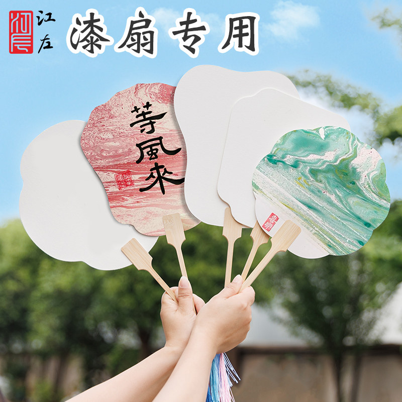 江左漂漆专用空白团扇宣纸扇子带字DIY漆染创作非遗漆扇儿童绘画书法漂漆扇材料包古风文创自制广告扇定制