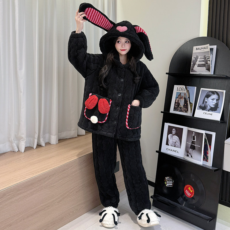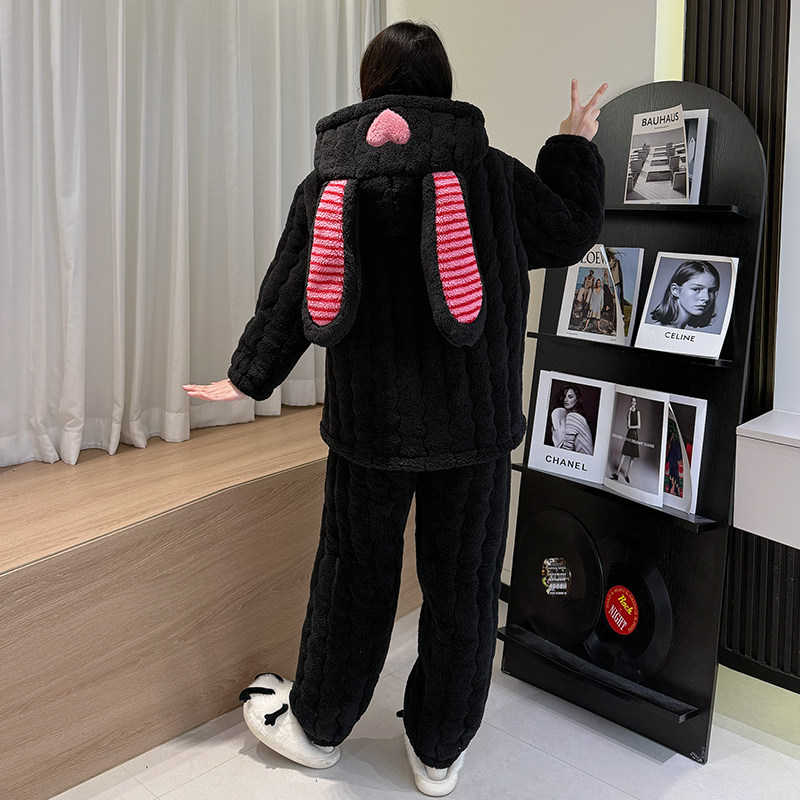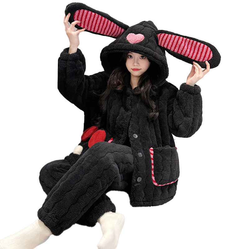 2025新款珊瑚绒睡衣女秋冬法兰绒加厚长袖女士可爱三层夹棉家居服