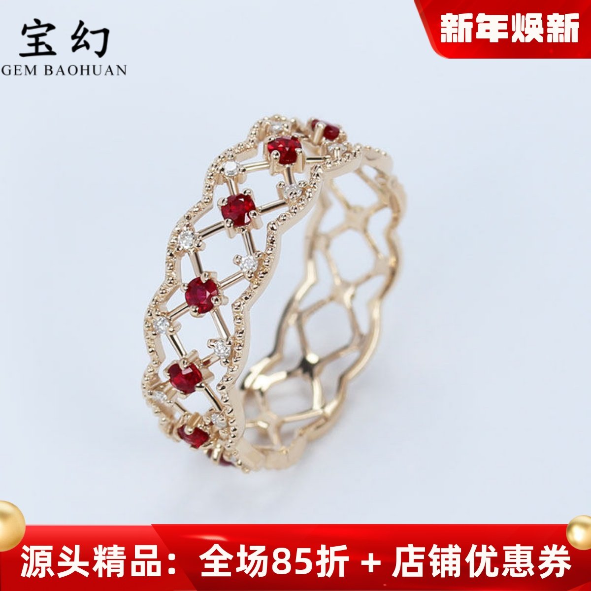 翡宝丽18k玫瑰金天然鸽血红宝石钻石戒指 彩宝复古镂空蕾丝珠边女