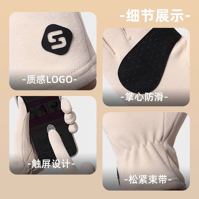 保暖手套女秋冬触屏加厚户外骑行开车德绒防风运动手套防冻男女款