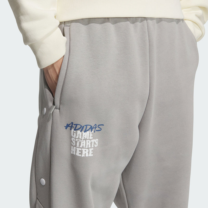 adidas阿迪达斯男子篮球保暖加绒侧开排扣印花宽松运动裤 KC2801