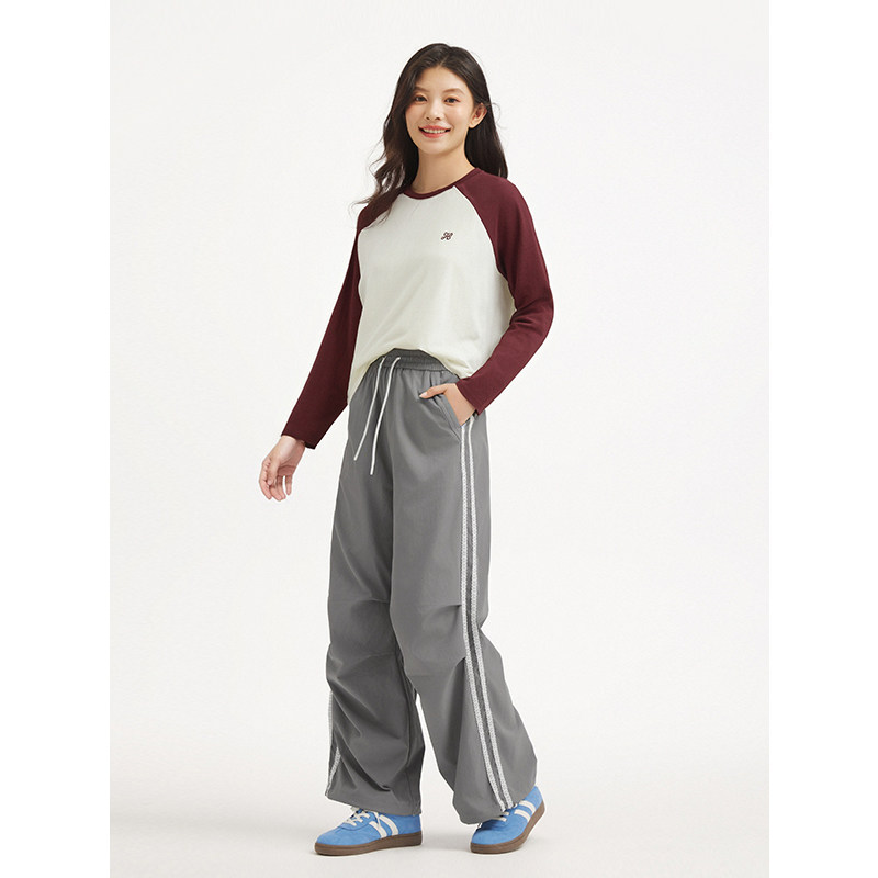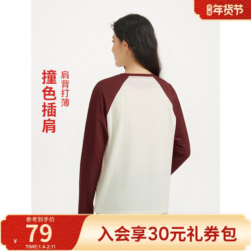 热风2026年春季新款女士自然垂感撞色插肩袖亲肤长袖T恤