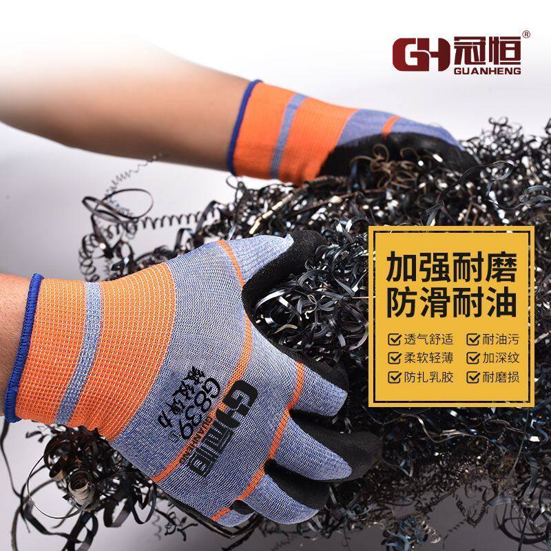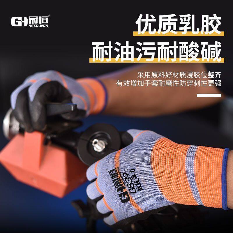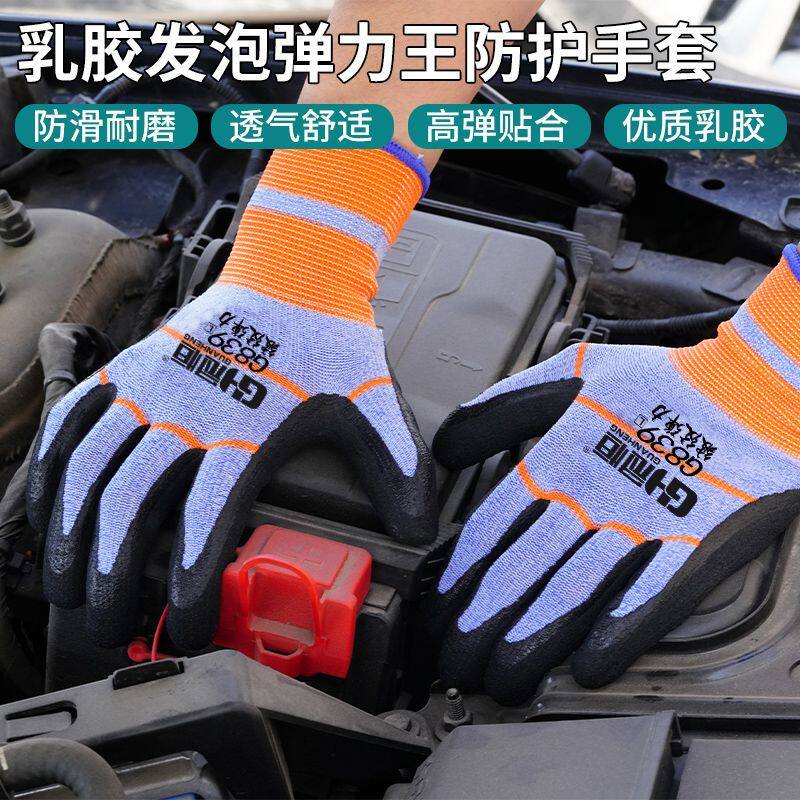 弹力王防护手套浸胶男女厚耐磨防滑乳胶工地发泡透气橡胶作业尼龙