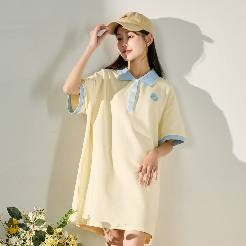 唐狮宽松撞色短裙子减龄慵懒女连衣裙甜美气质polo领裙子高级小众