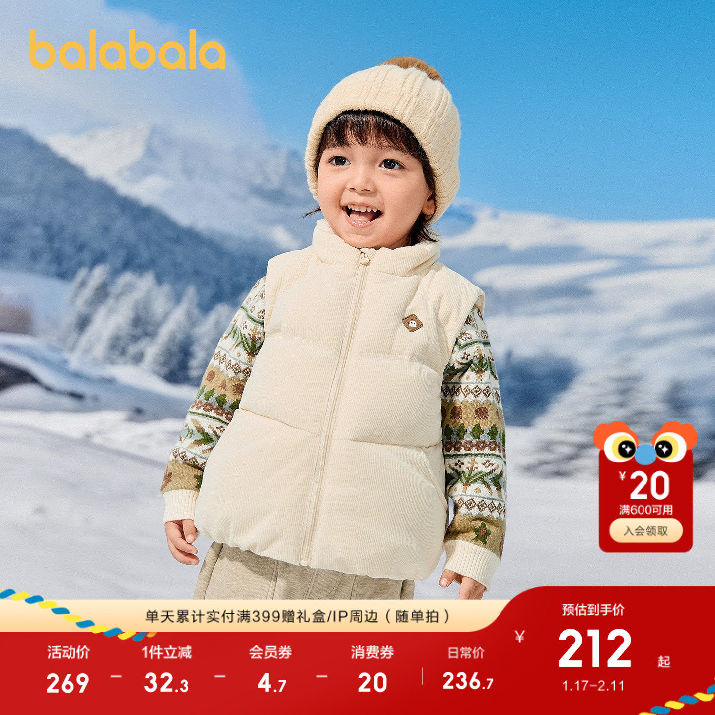 巴拉巴拉balaOne儿童羽绒马甲女童男童小童外套新款童装2025秋冬