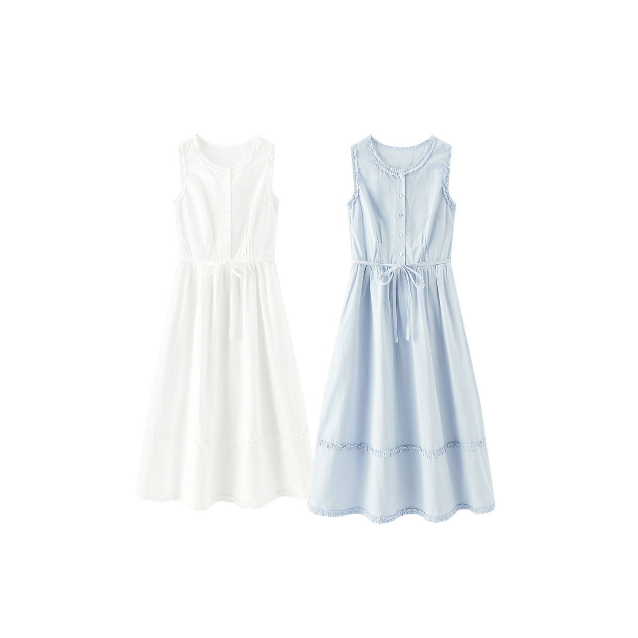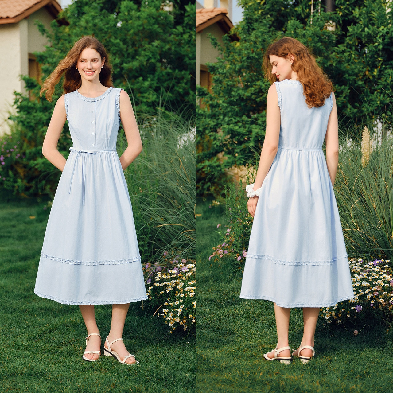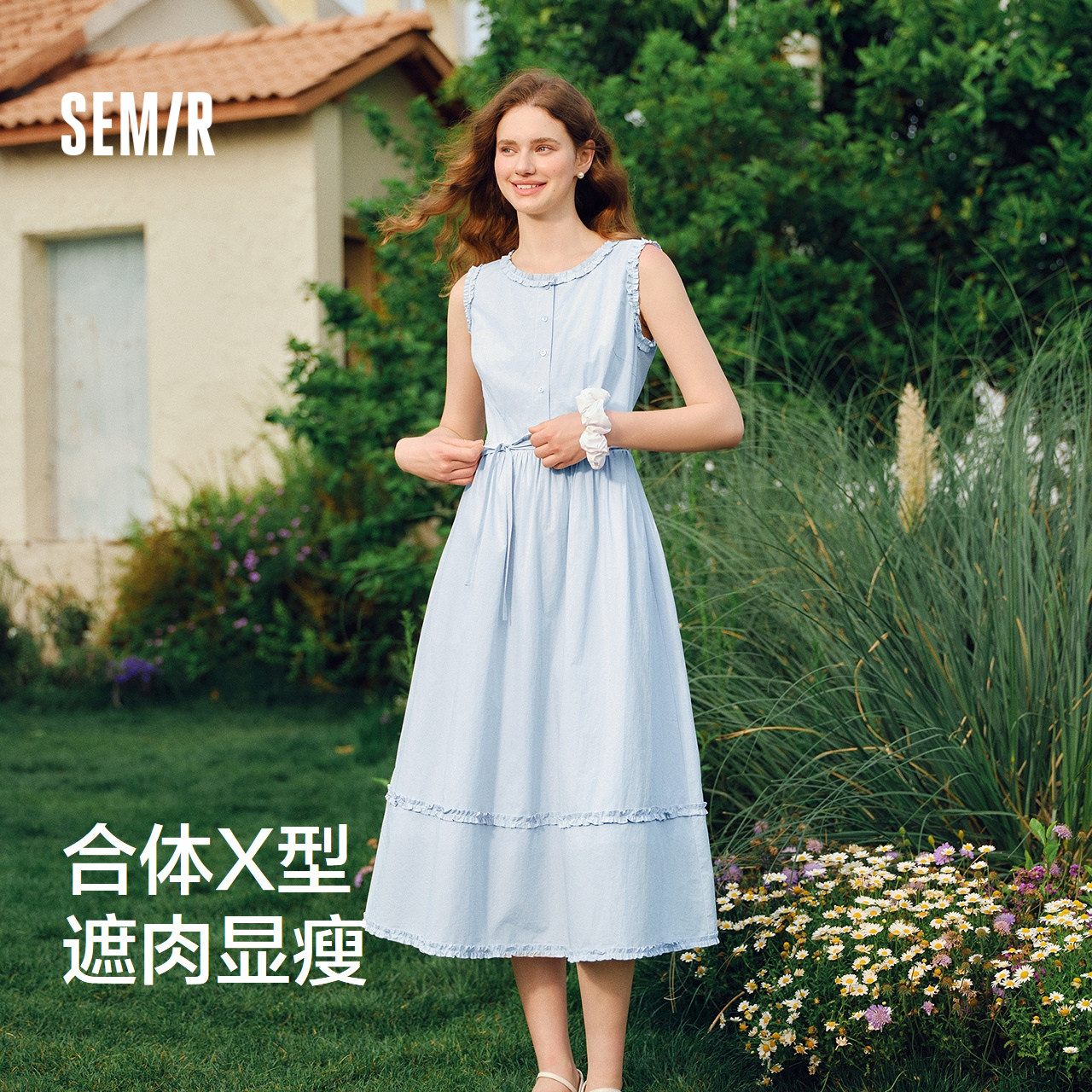 森马连衣裙女显瘦收腰长裙温柔2025新款夏季气质木耳边背心裙简约