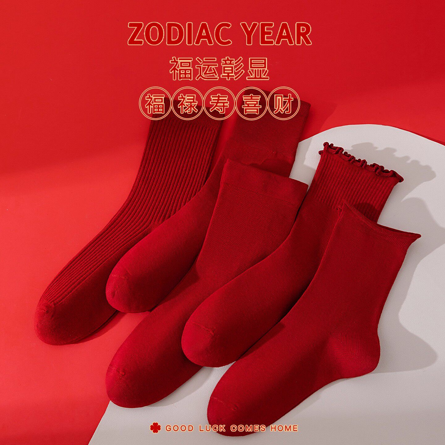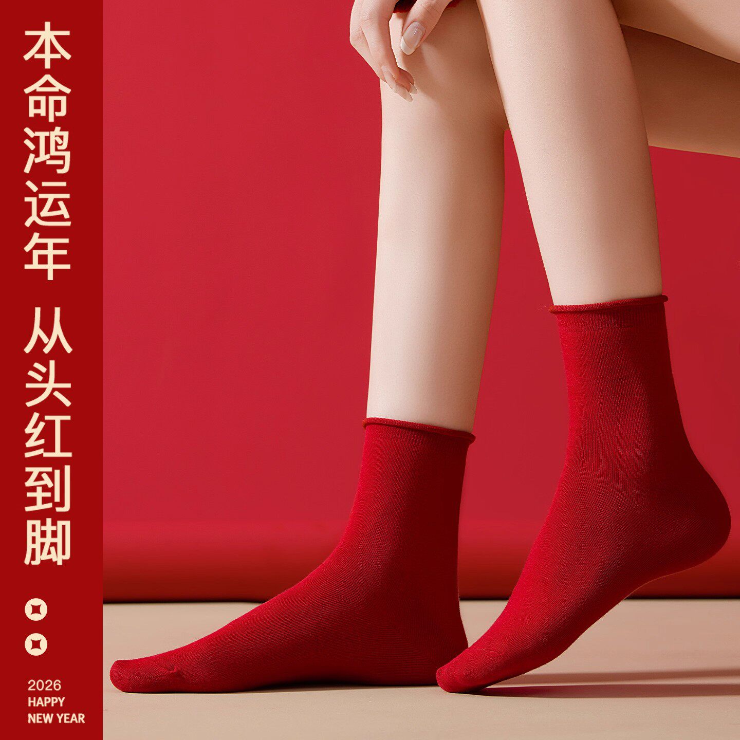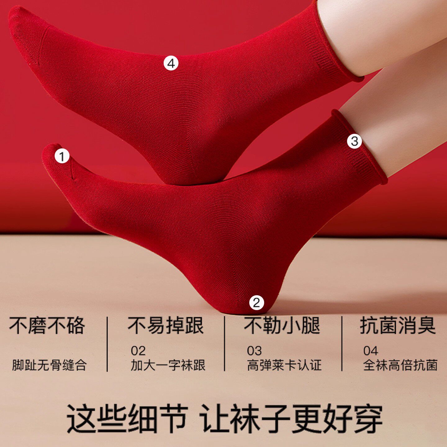 本命年红袜子女款红色纯棉马年中筒袜大红色袜子新年棉袜情侣长袜