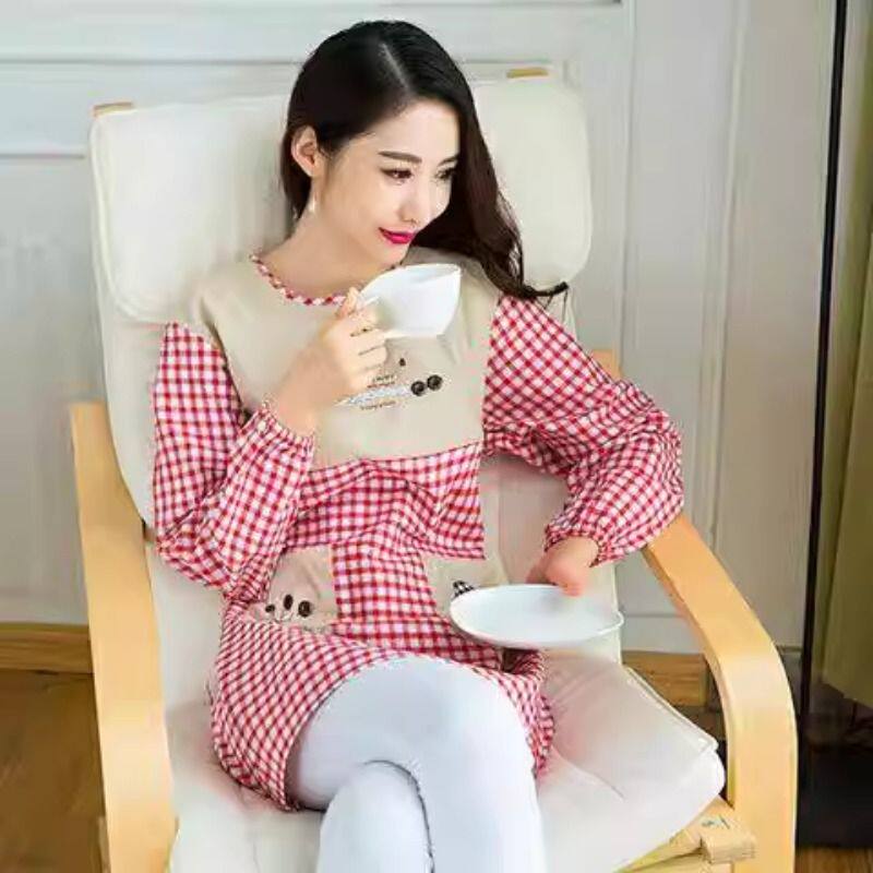 新款棉布耐磨围裙长袖厨房家用防污罩衣透气围腰做饭上班工作服女