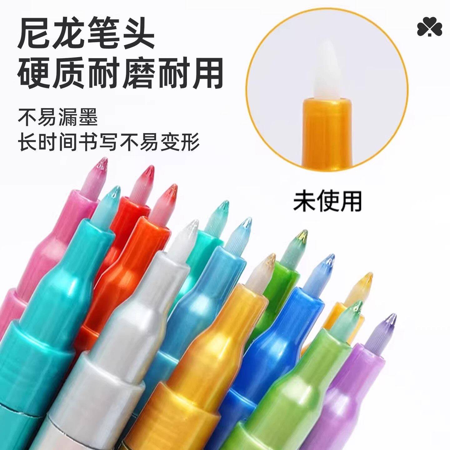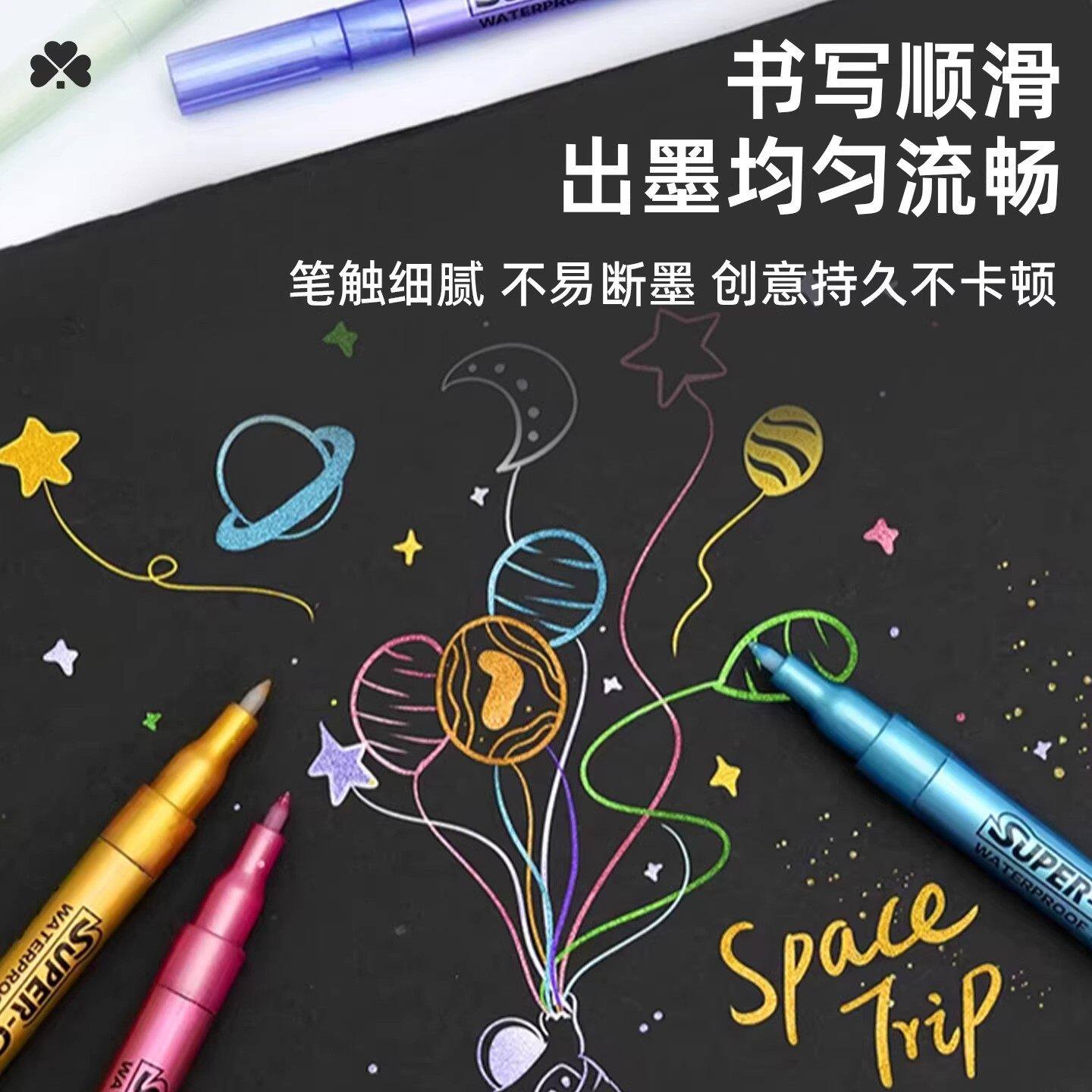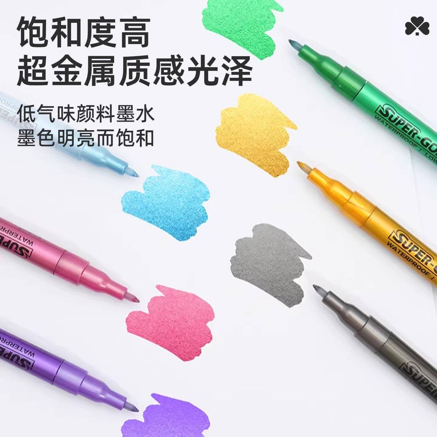 超级金属色彩色马克笔油性防水高达模型机甲笔DIY补色笔工具手帐装饰荧光细头模型笔签名速干金属闪光笔套装