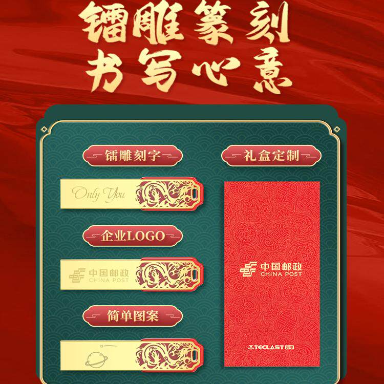 年会礼品64G中国风u盘企业定制logo刻字生肖U盘商务礼品礼盒32G