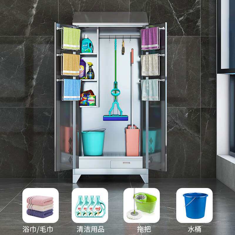 304不锈钢清洁柜学校保洁工具柜教室拖把扫把收纳柜阳台卫生间