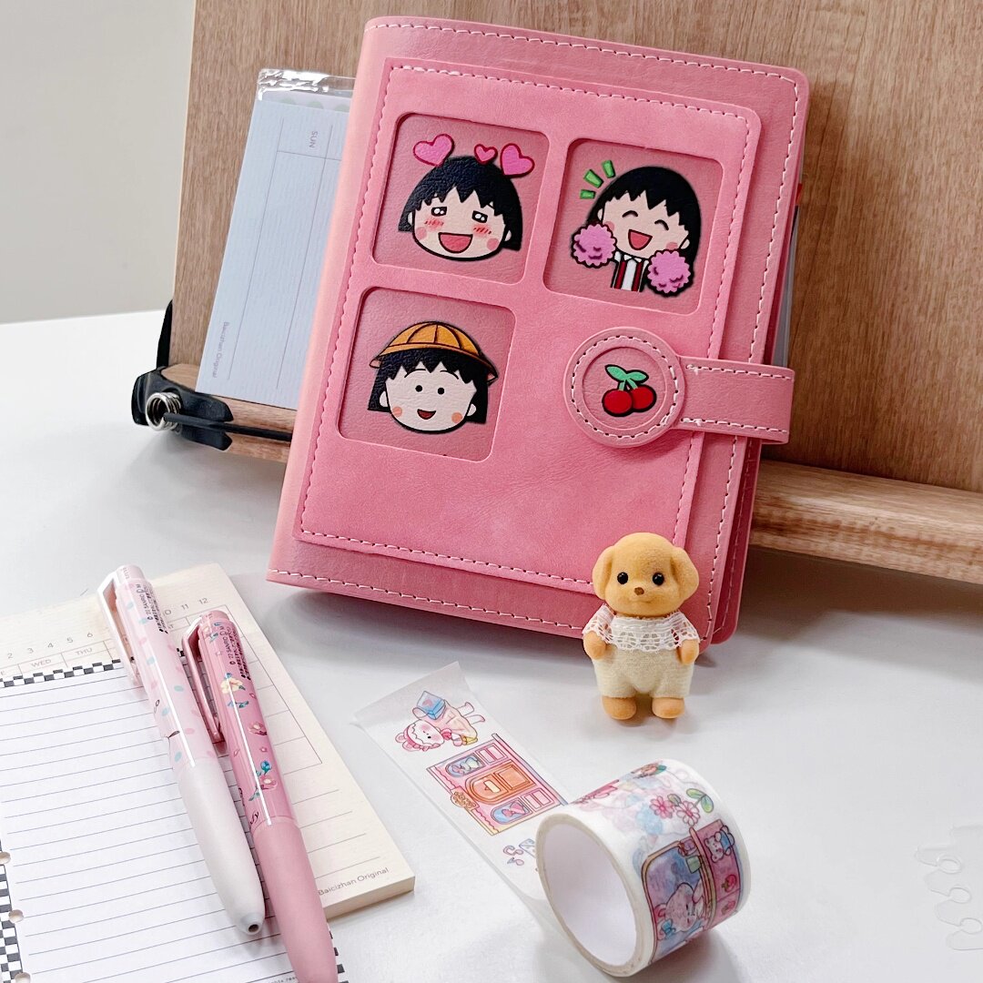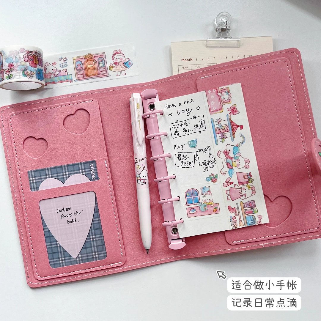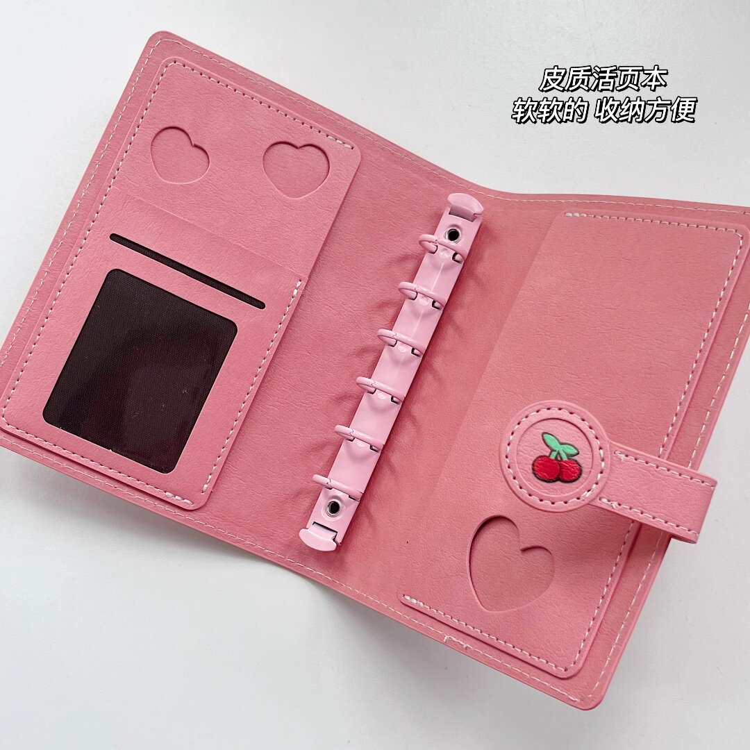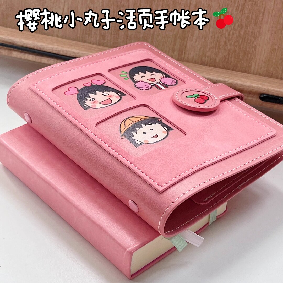 卡哇伊樱桃小丸子粉色皮质A7活页手账本易携带口袋本日程本笔记本