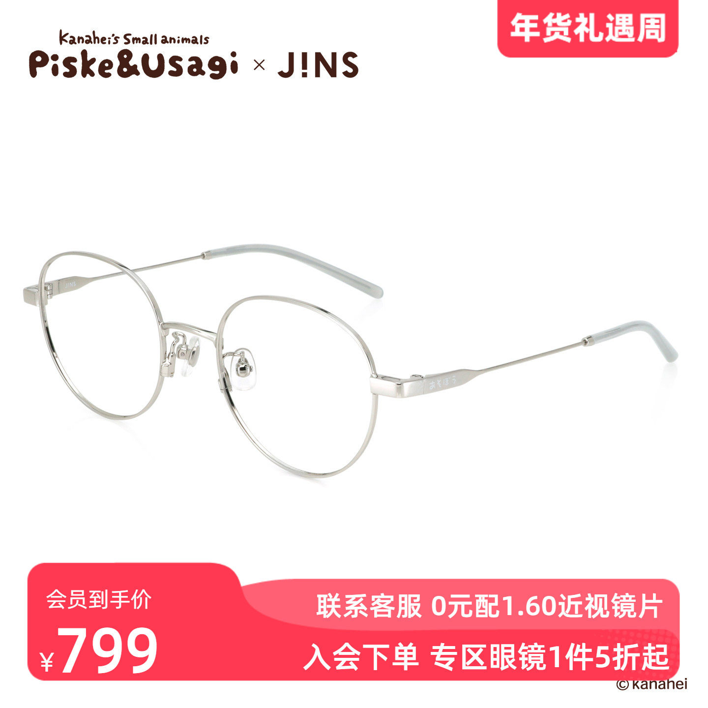 JINS睛姿X卡娜赫拉的小动物联名眼镜贴片墨镜可加配镜片UMF25S169