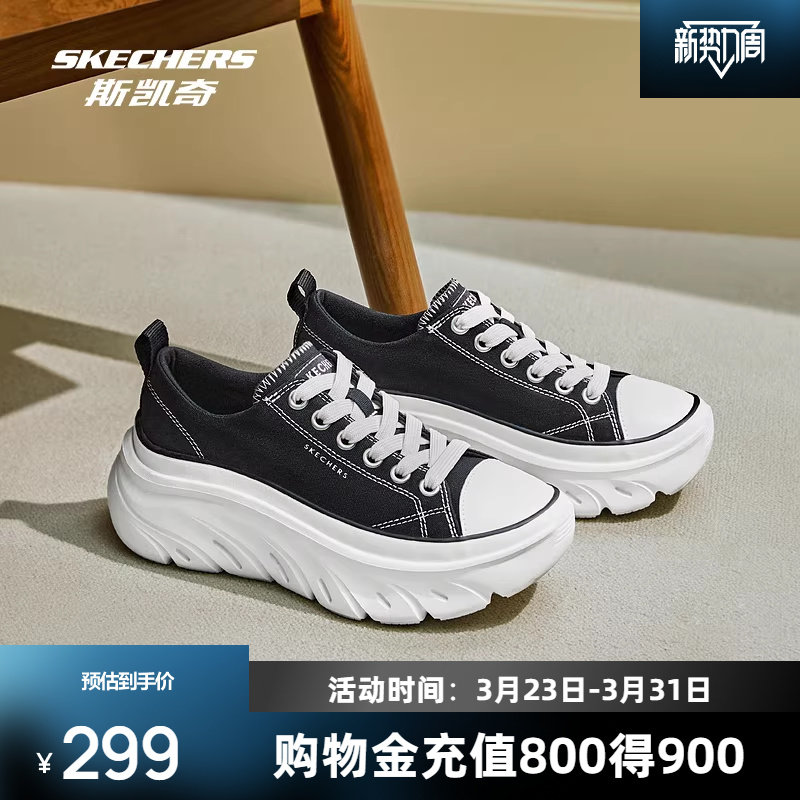 斯凯奇女士时尚休闲透气舒适轻质减震增高厚底帆布鞋耐磨透气时尚