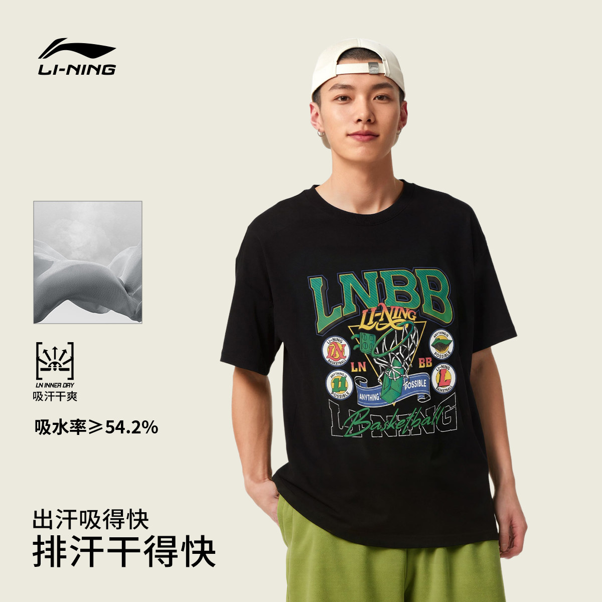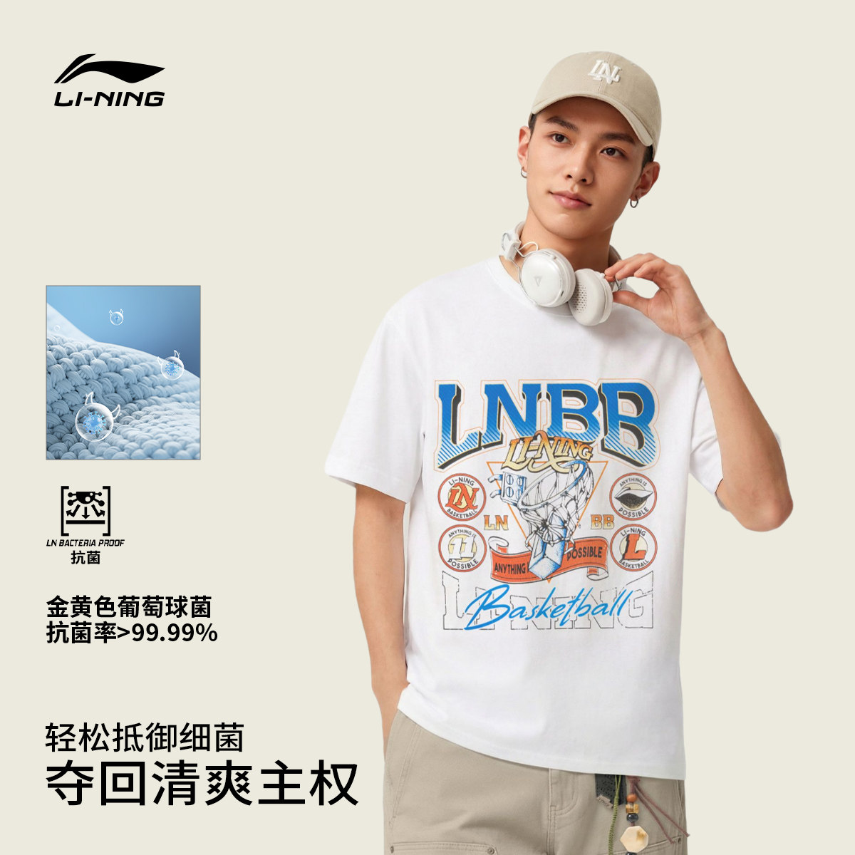 李宁短袖男春夏2026新款圆领半袖宽松篮球上衣印花体恤运动T恤女