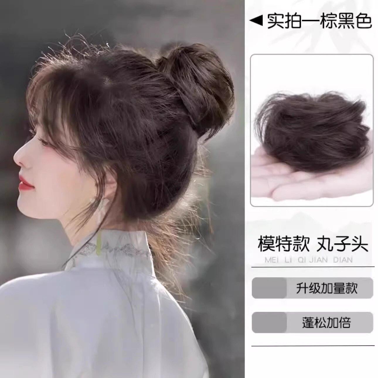低扎丸子头假发鸡毛头抓夹盘发发包慵懒感造型头饰自然蓬松后脑勺