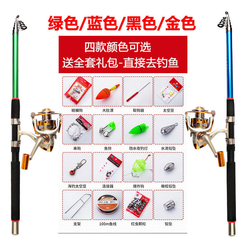 新款海杆抛竿套装组合特价超硬钓鱼大物远投竿金属轮渔具全套甩竿