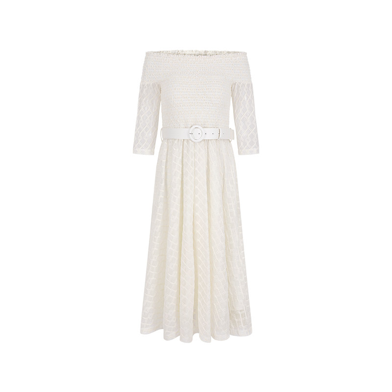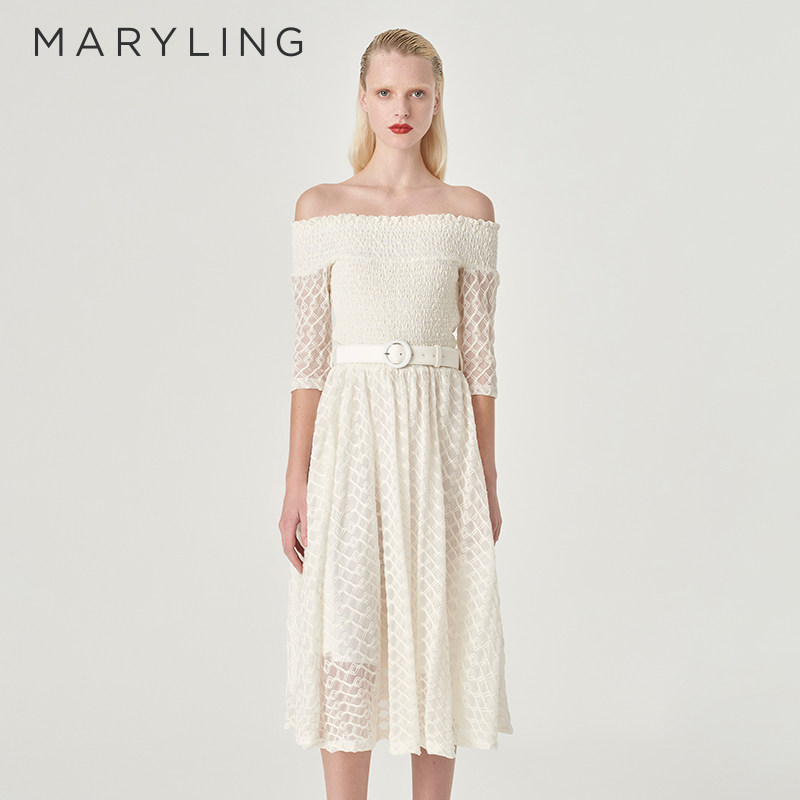 MARYLING玛俪琳夏季新品米白色一字肩A摆连衣裙A1ECW64110