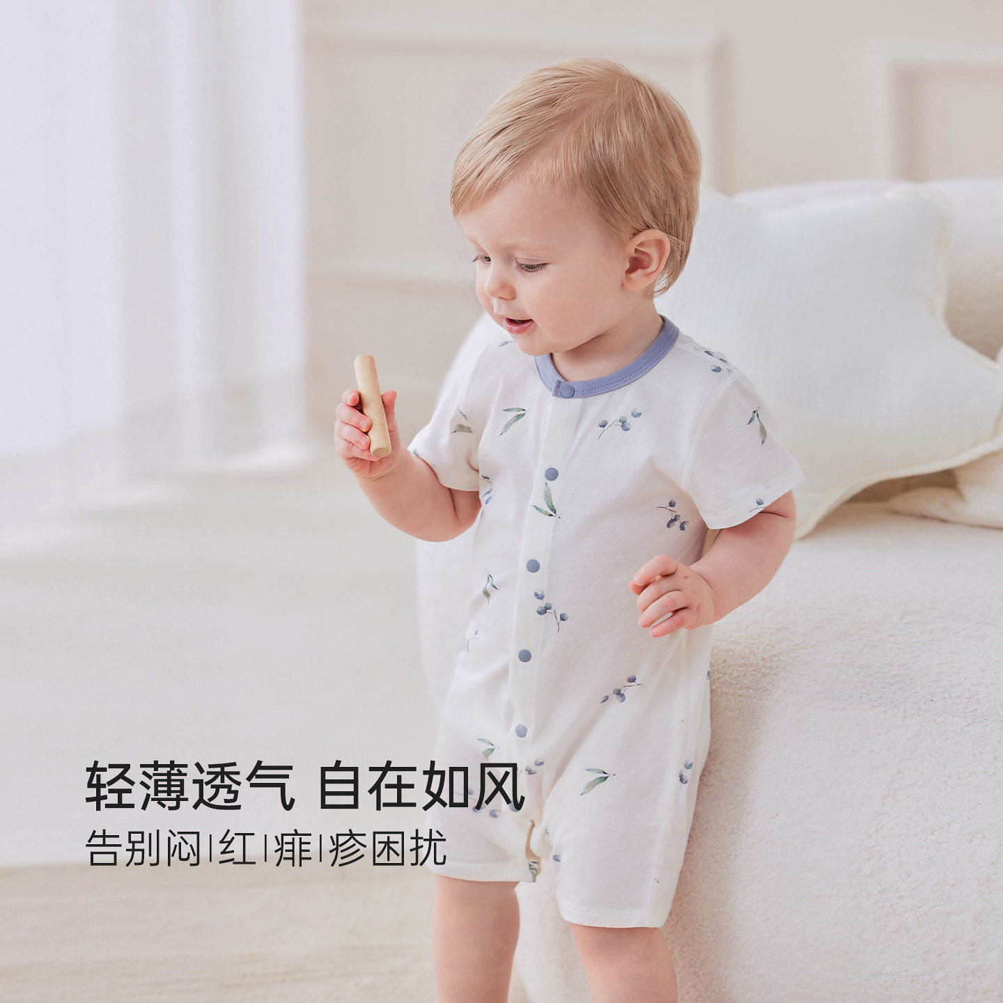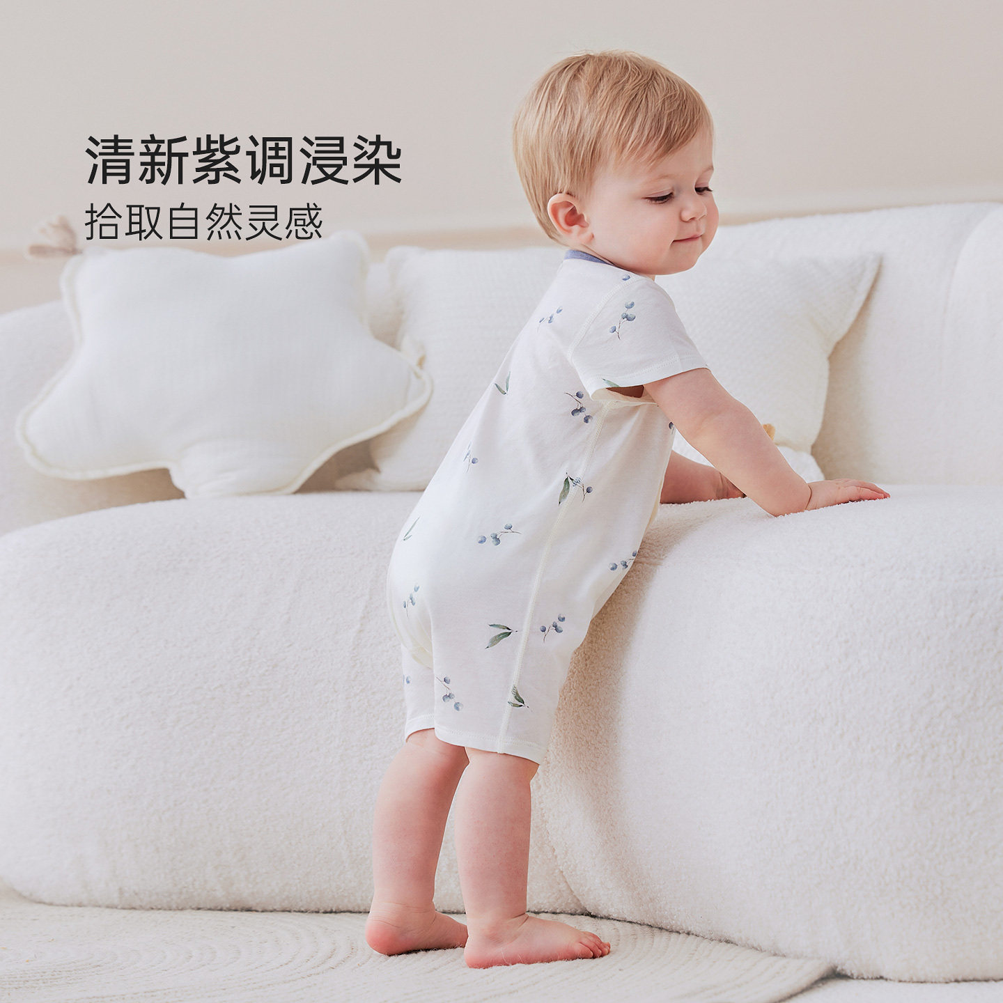 babylove【安心柔】婴儿连体衣夏季A类纯棉柔软短袖爬服微酸盛夏