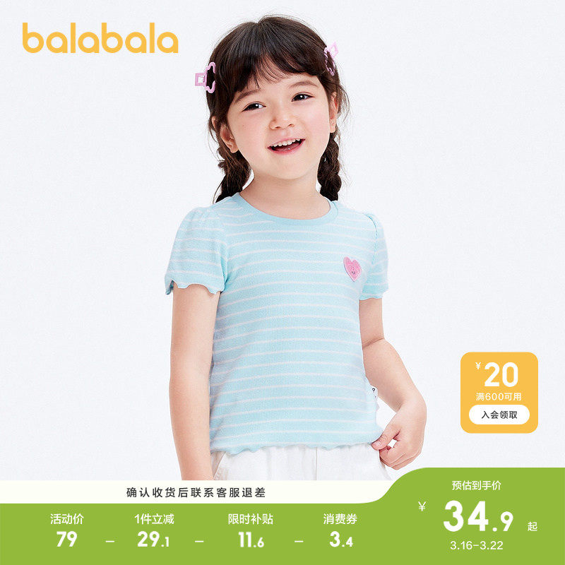 巴拉巴拉宝宝短袖t恤婴儿女童上衣轻薄新款夏装甜美时尚可爱清新