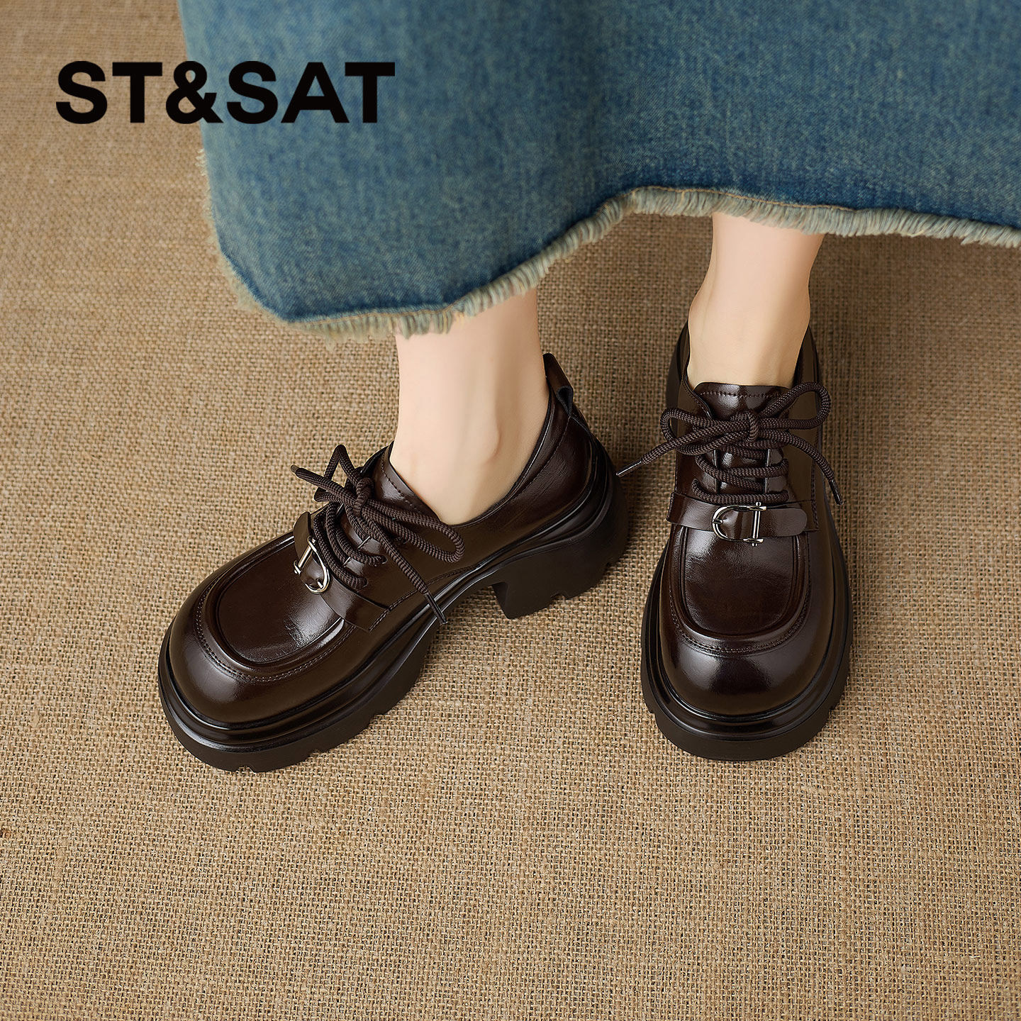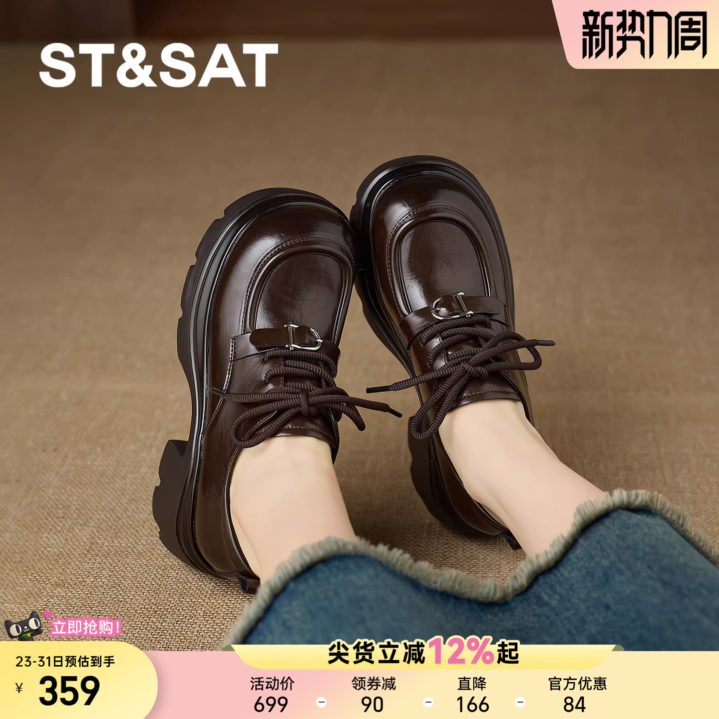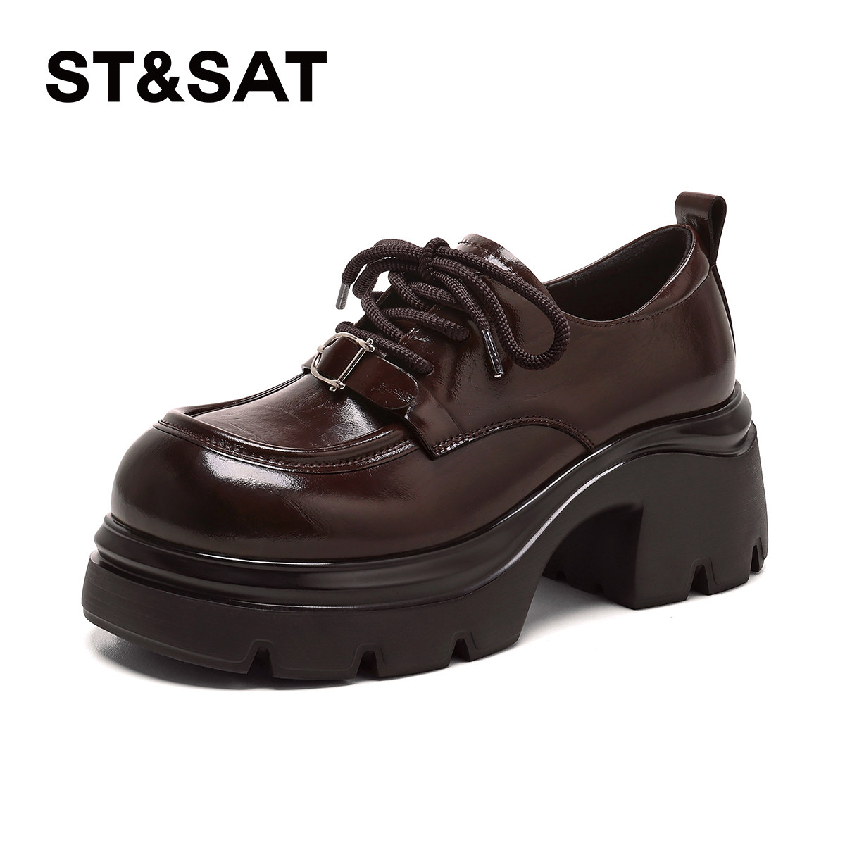星期六厚底乐福鞋女2026年春季新款英伦系带小皮鞋增高休闲通勤鞋