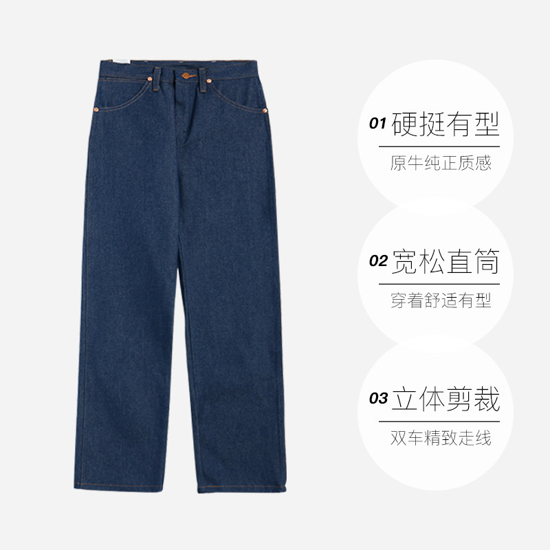 【自营】Wrangler/威格原色未脱浆牛仔裤重磅宽松直筒长裤潮13MWZ