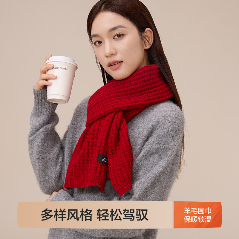 HLA/海澜之家羊毛围巾男士新款女士户外保暖防寒氛围感情人节礼物