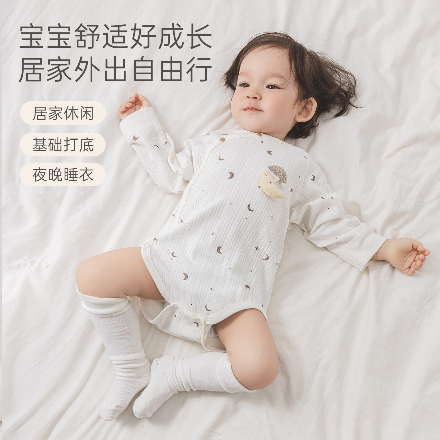 宝宝蚕丝棉保暖包屁衣秋冬季婴儿莫代尔长袖微弹连体三角哈衣爬服