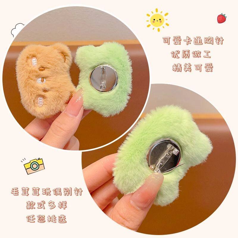 卡通毛绒小熊青蛙公仔胸针可爱猫咪别针装饰玩偶鞋袜包包挂件配饰