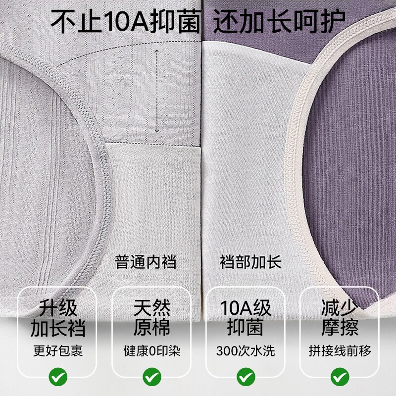 黛尔佳人无菌内裤女士2026新款纯棉抗菌全棉加长裆无痕少女三角裤