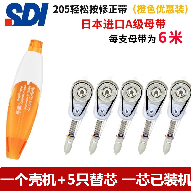 台湾SDI手牌CT-205A修正带按压式修改带涂改带改正带225H进口替芯