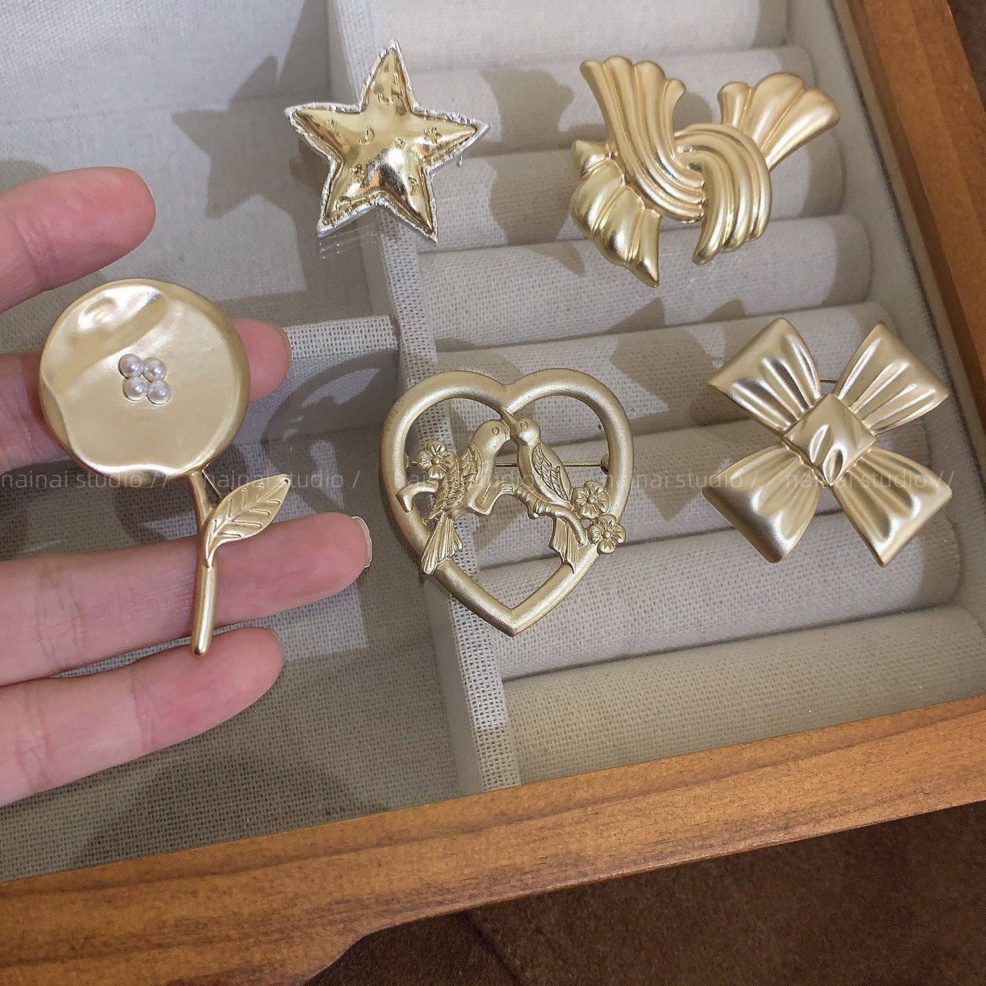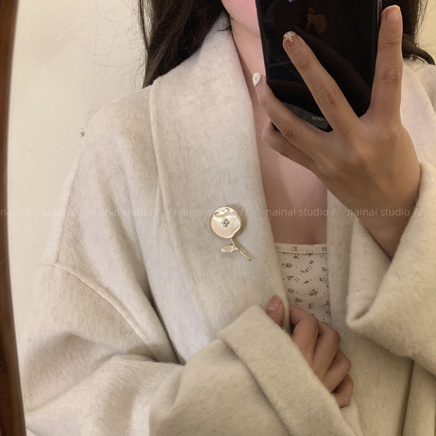 中古宫廷风胸针~哑光磨砂复古高级感珍珠大衣别针外套胸花配饰女