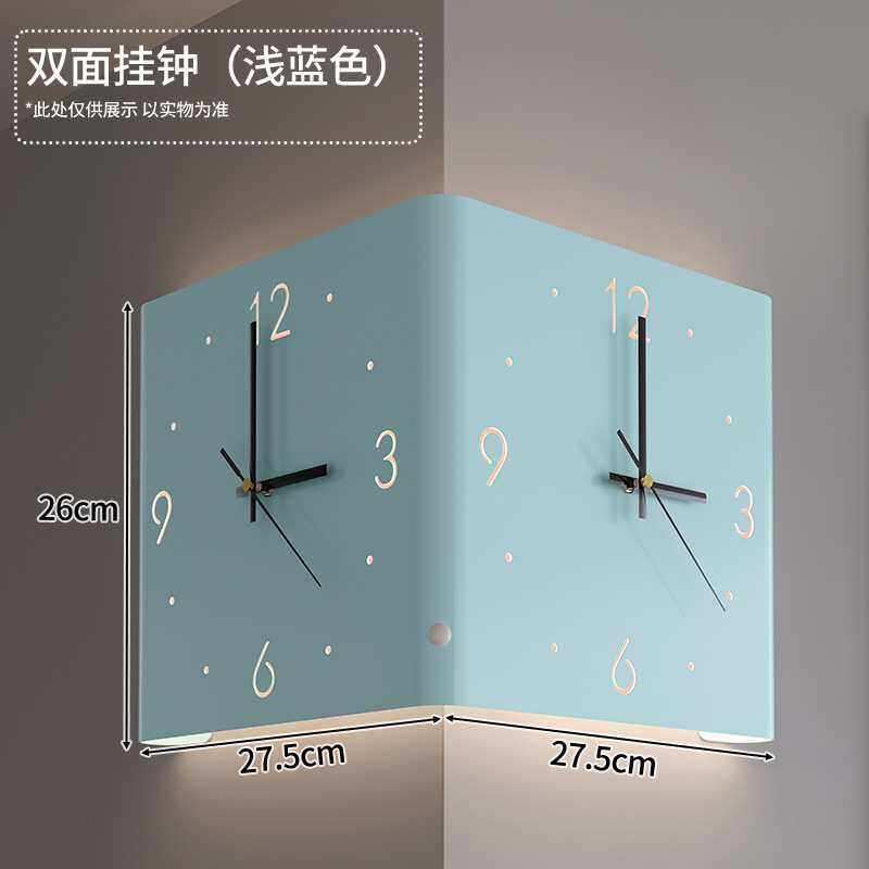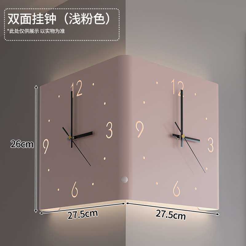 2024新款双面转角挂钟家用客厅现代简约拐角创意时钟壁灯阳角钟表