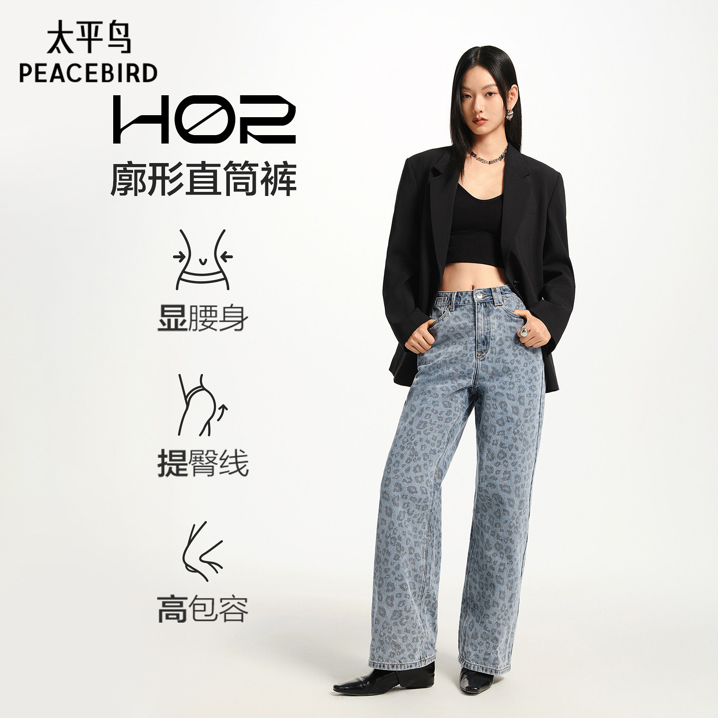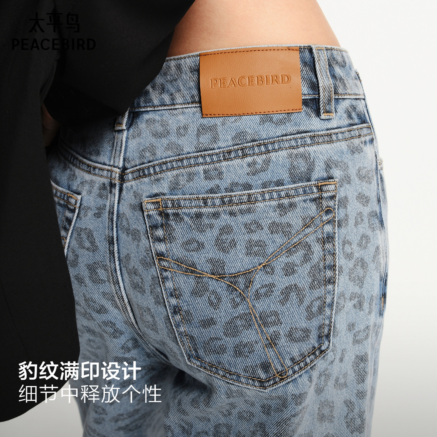 豹纹牛仔裤太平鸟高腰直筒牛仔裤26春季新款宽松显瘦阔腿牛仔裤女