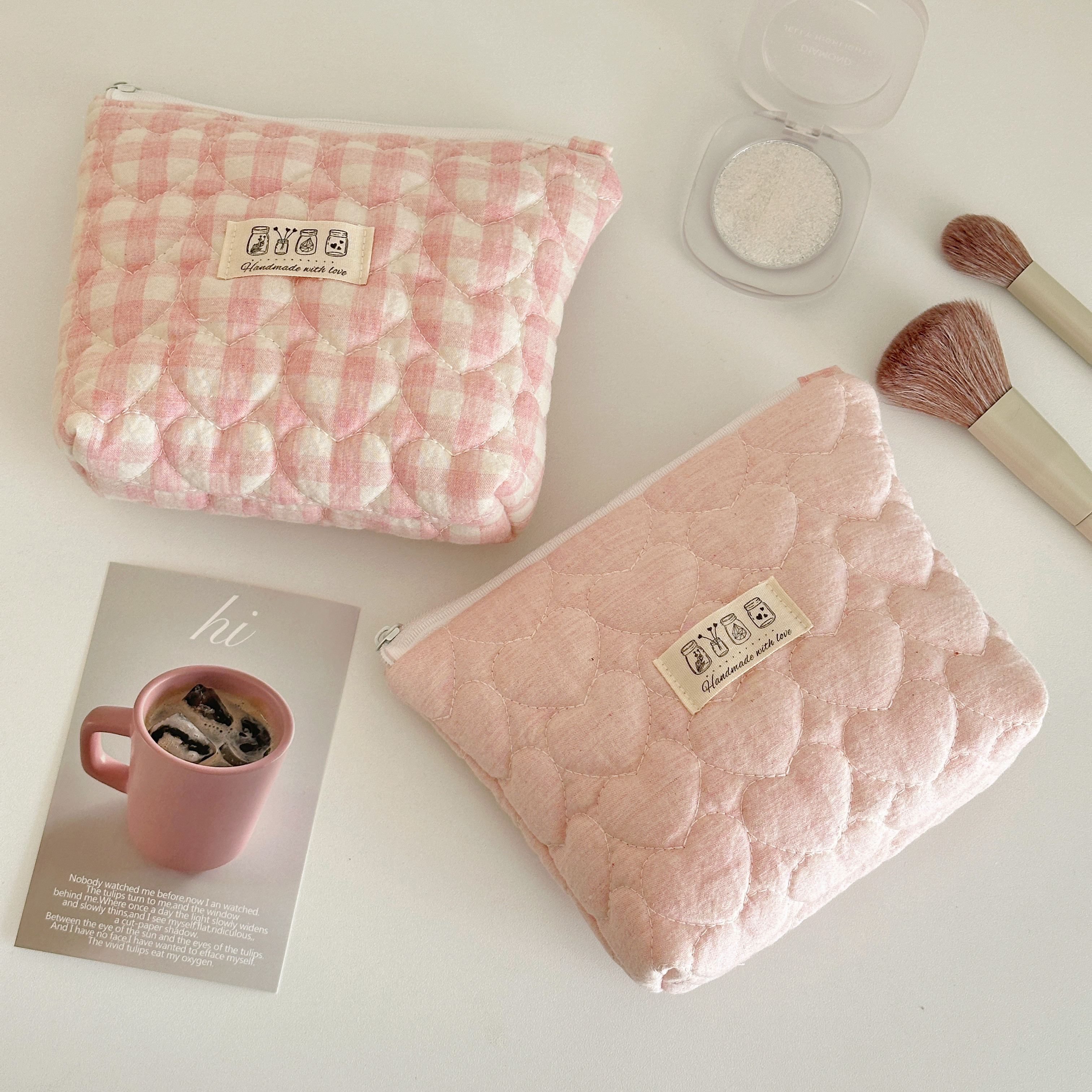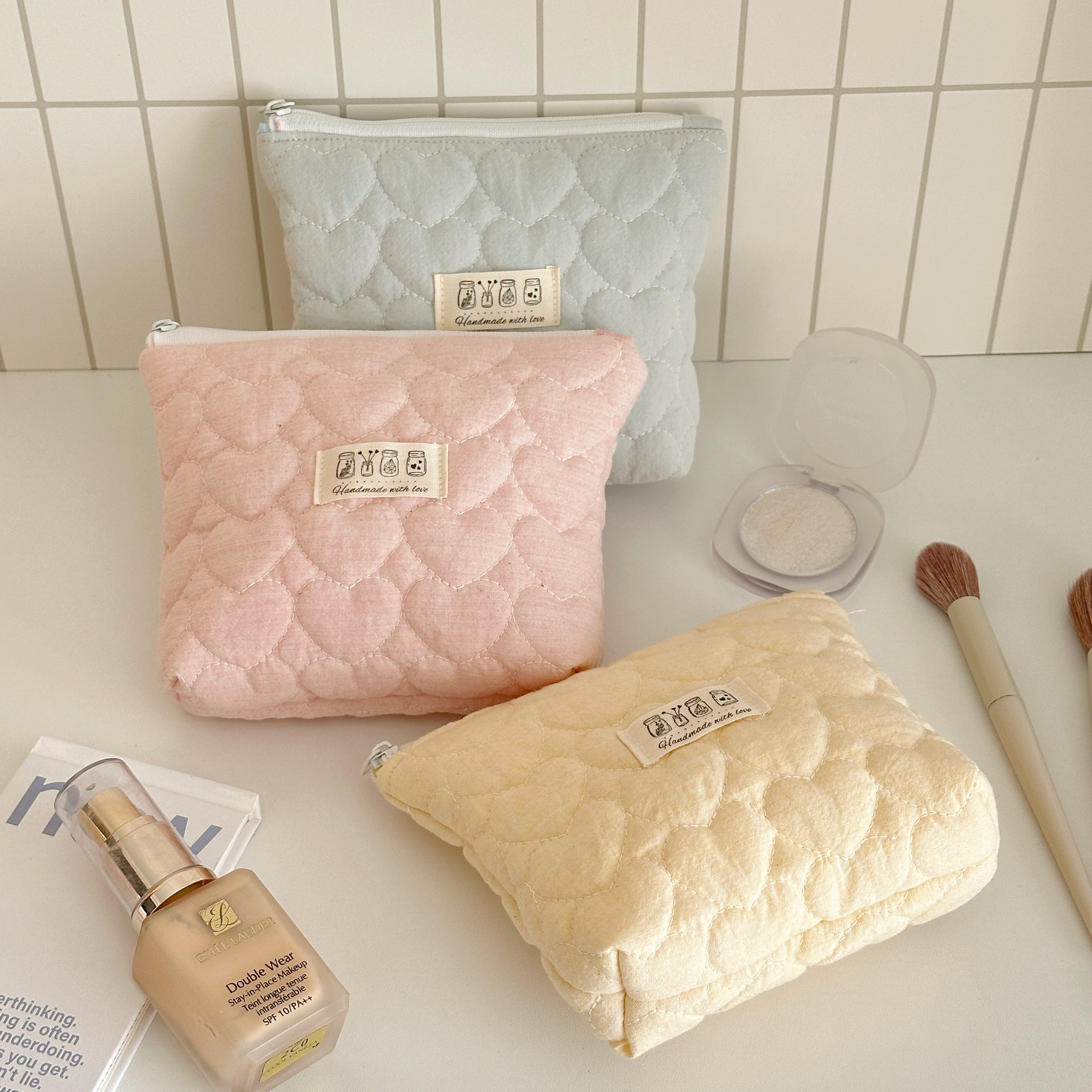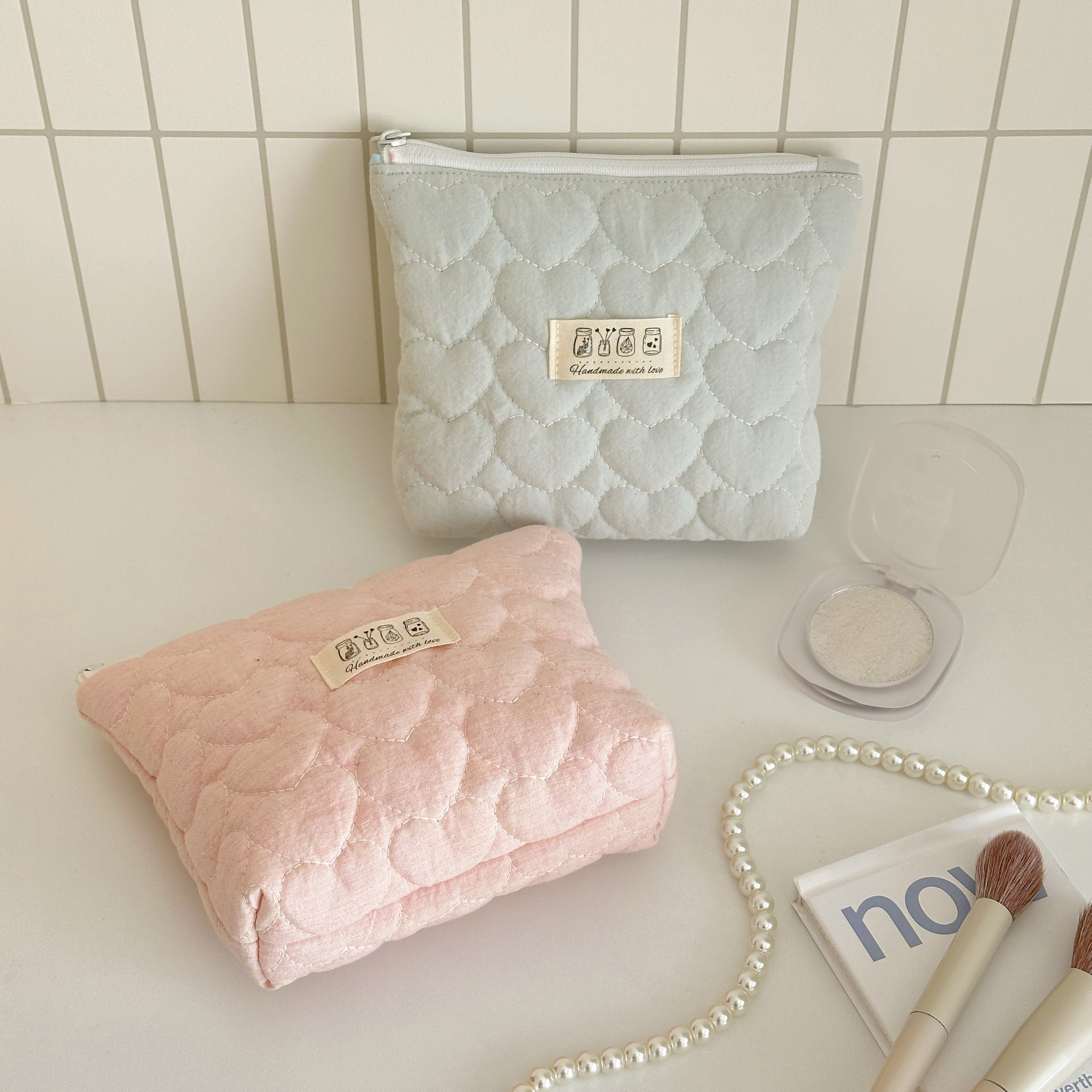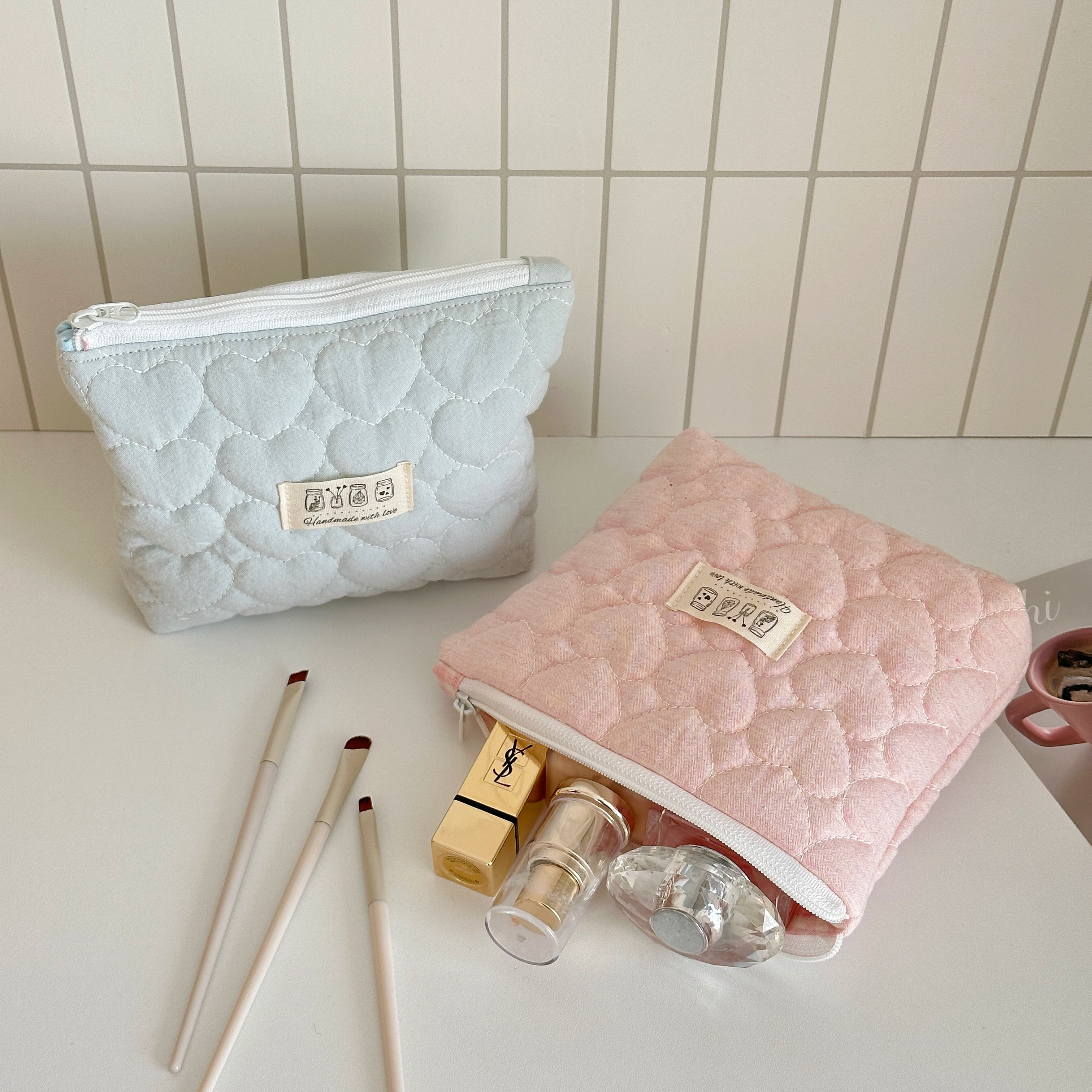 MX手作|韩系少女心化妆包ins风夹棉收纳包大容量旅行洗漱包手拿