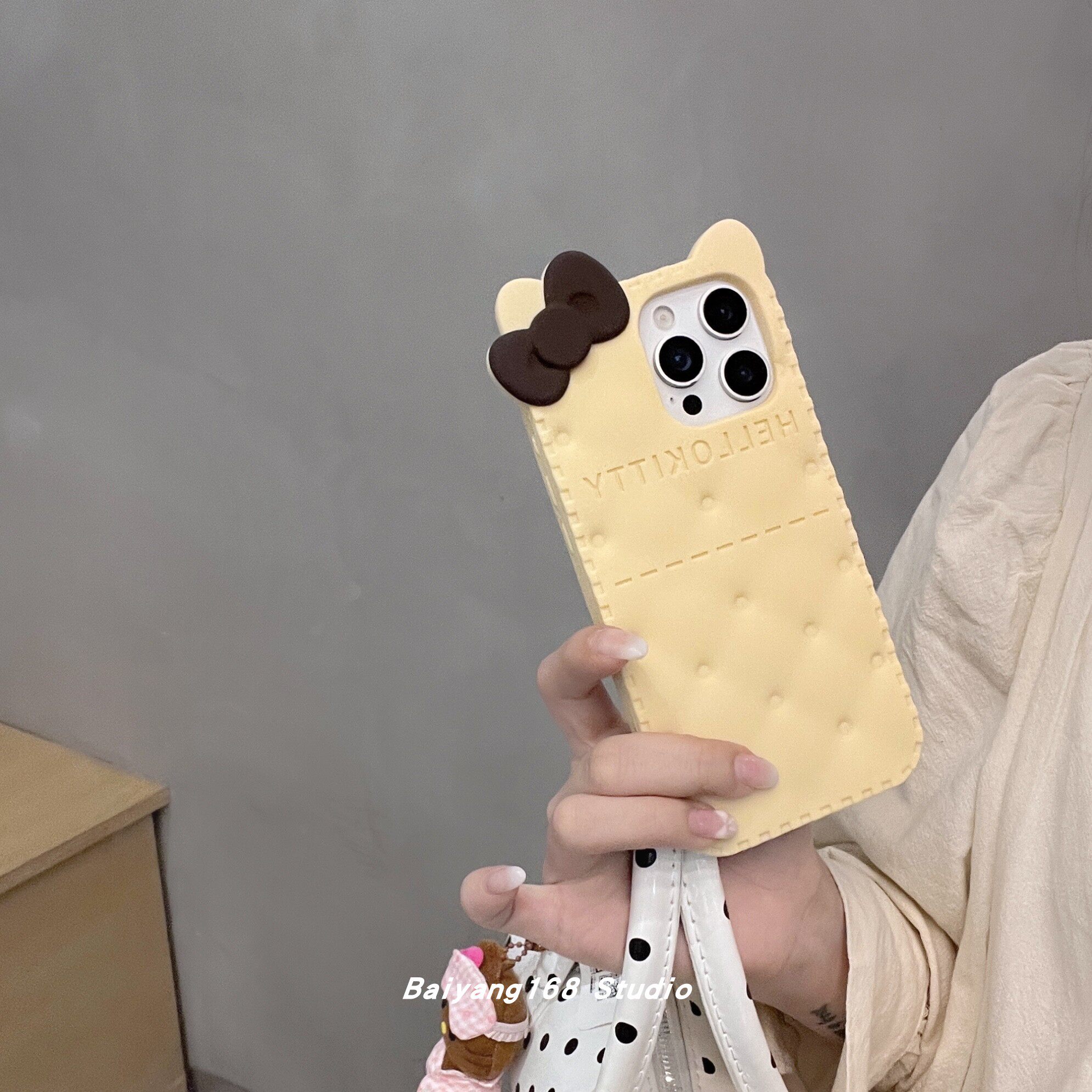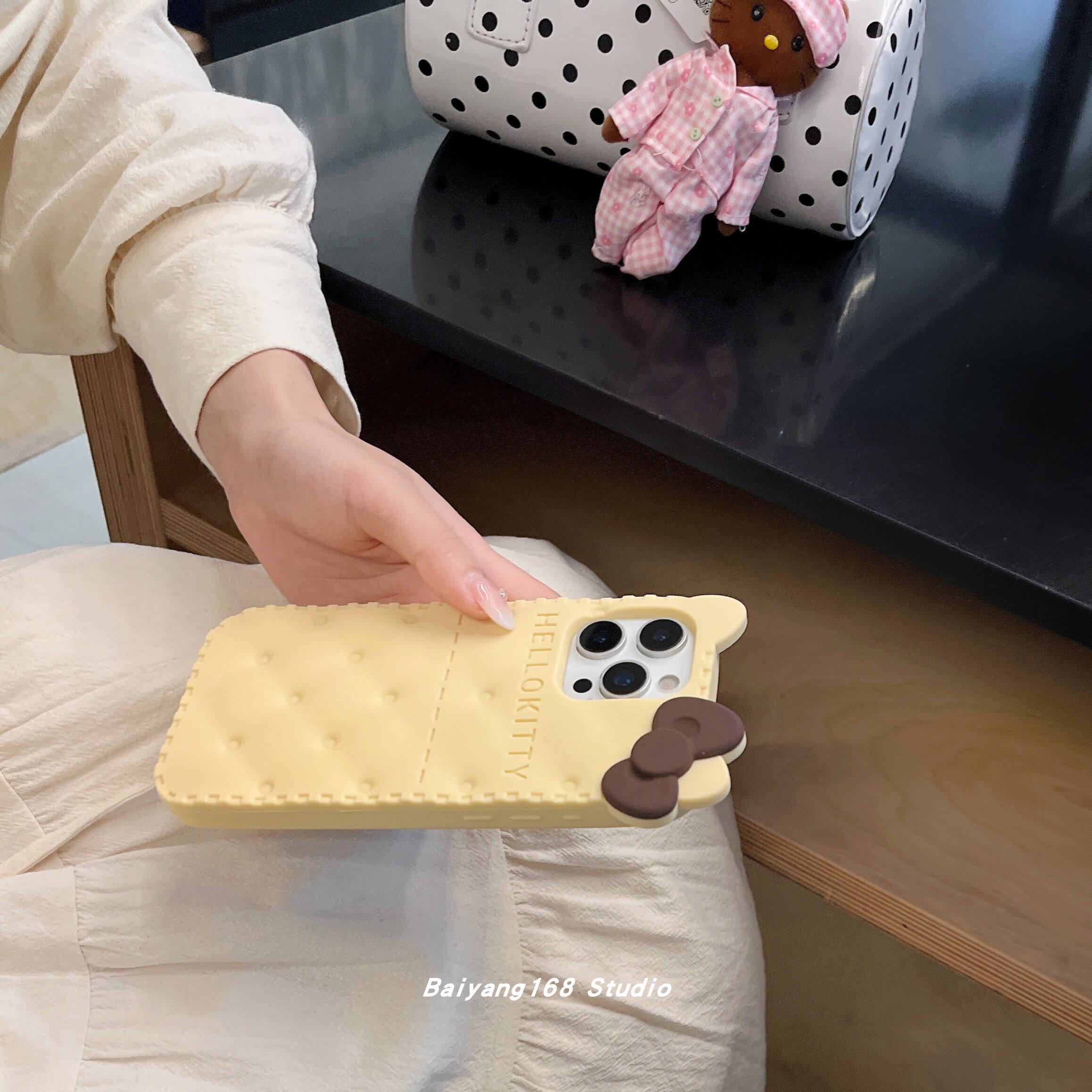 立体苏打饼干kitty猫适用iPhone16promax手机壳苹果15新款13卡通14pro日韩风16pro网红可爱16女15pro全包硅胶