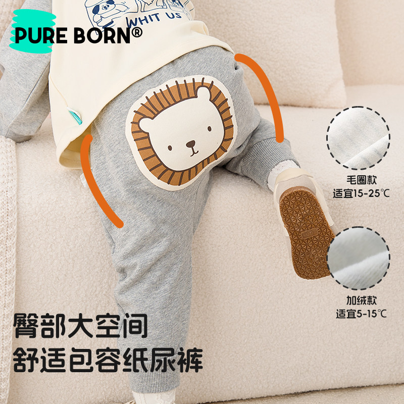 博睿恩宝宝加绒大屁屁裤秋冬款婴儿加厚保暖裤子男女宝宝pp裤童装