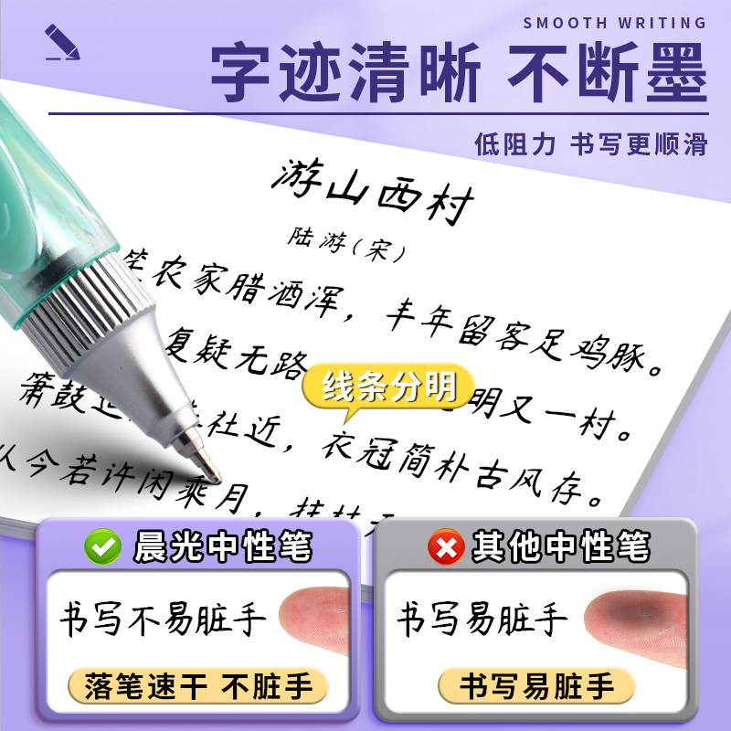 晨光中性笔按动式黑色水笔红色蓝色速干顺滑大容量学生用碳素笔