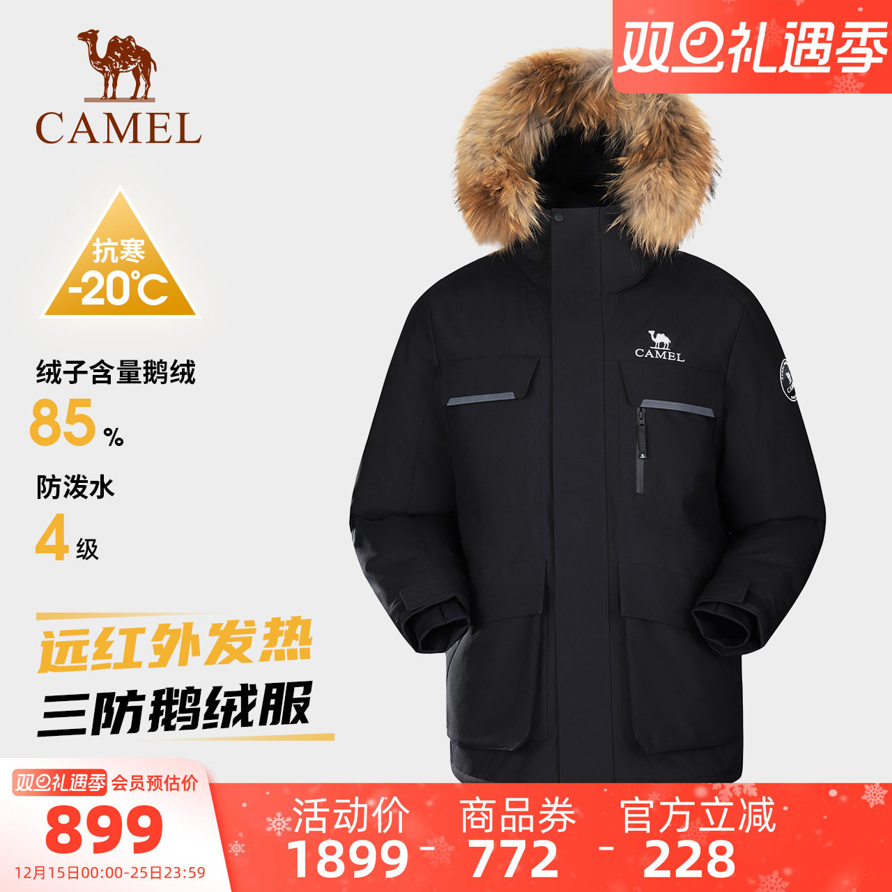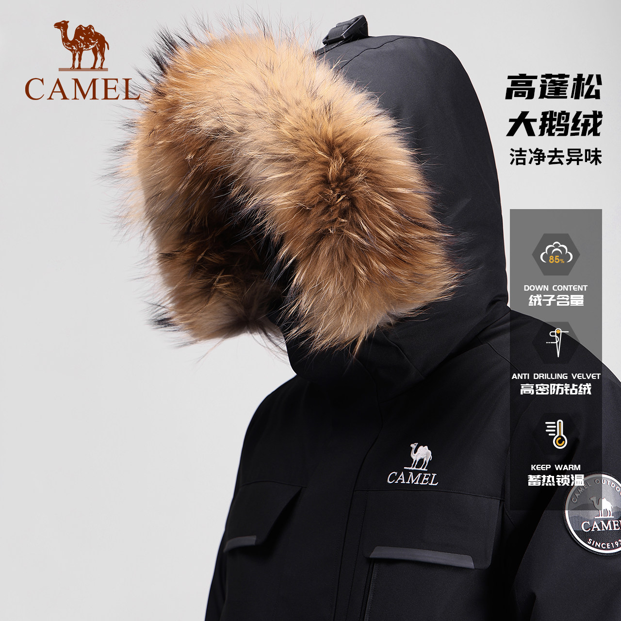 【鹅绒】骆驼女装羽绒服2025冬季新款保暖加厚派克服毛领羽绒外套